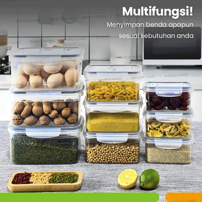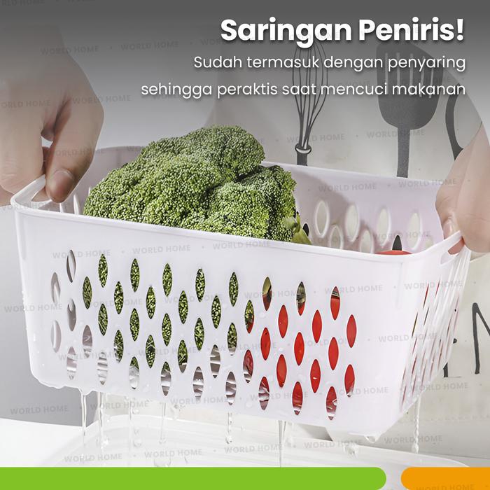 WHI - 2 SET 6 PCS KOTAK PLASTIK TUTUP PENGUNCI DILENGK SARINGAN TEMPAT BUAH DAN SAYUR WADAH MULTIFUNGSI - KOTAK 2 SET 6 PCS