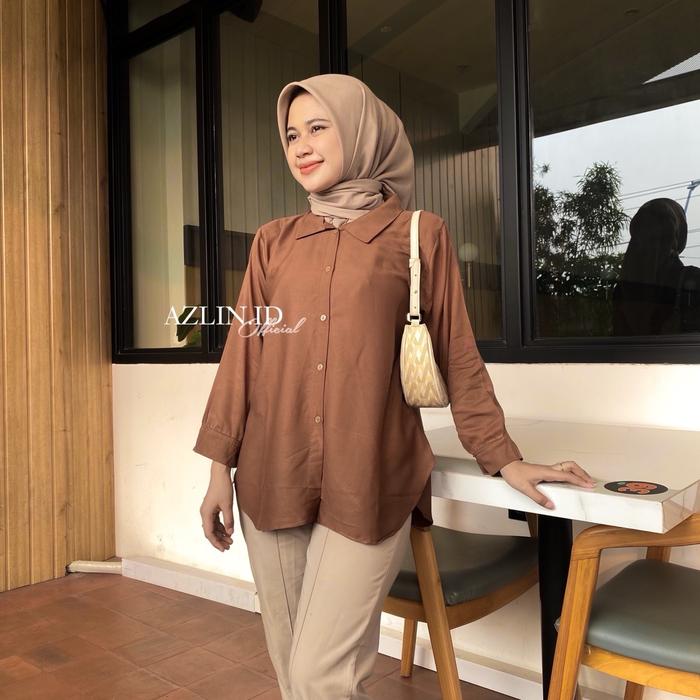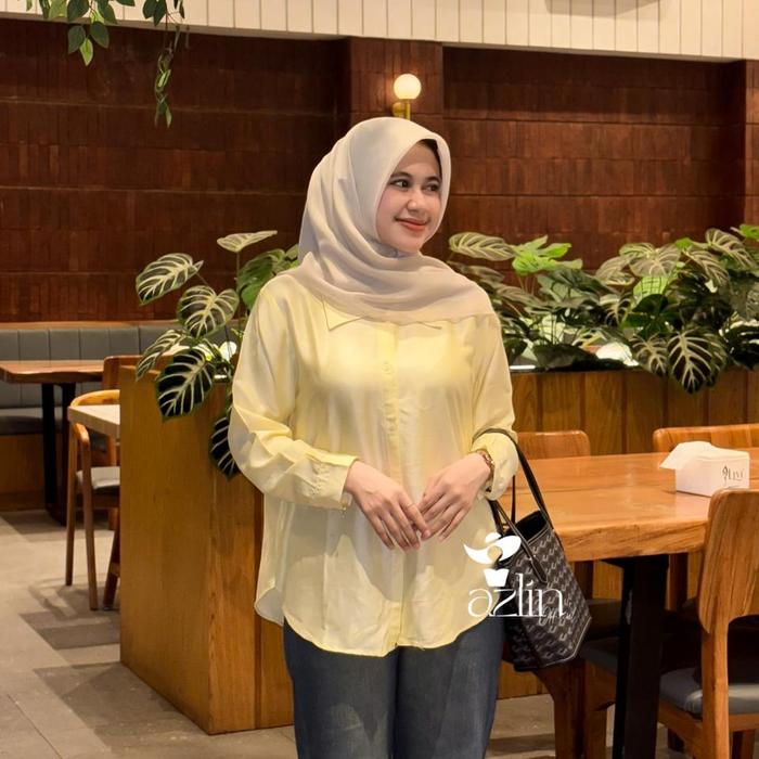 BLOUSE KEMEJA WANITA LOS A.Z RAYON TWILL BASIC LENGAN PANJANG T0P - TERMURAH BERKUALITAS - OVERSIZE, ATASAN BAJU CASUAL MUSLIM REMAJA - PUTIH, M LD 100