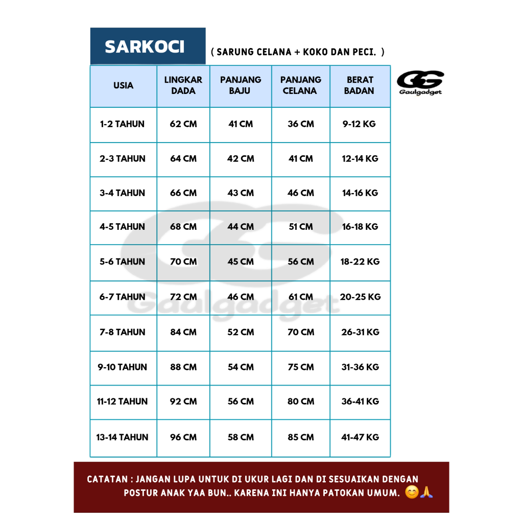 Setelan Koko Anak Sarkoci 1-14 Tahun Bahan Polyester