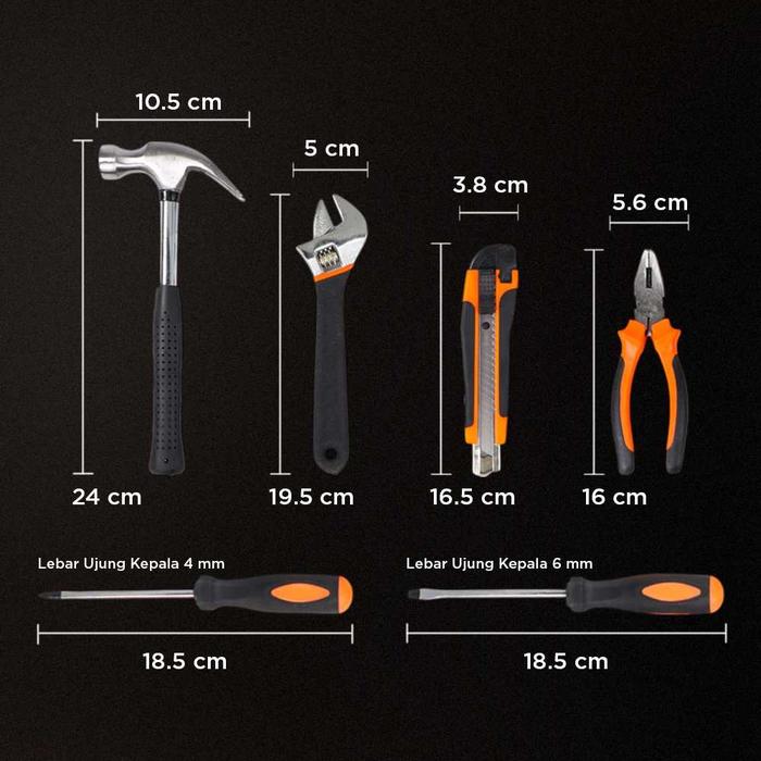 SET ALAT PERKAKAS TANG PALU OBENG KUNCI L LAKBAN WITH BOX STORAGE 19 IN 1 BG50TC BENGKEL KUNCI SOCK - 19 IN 1