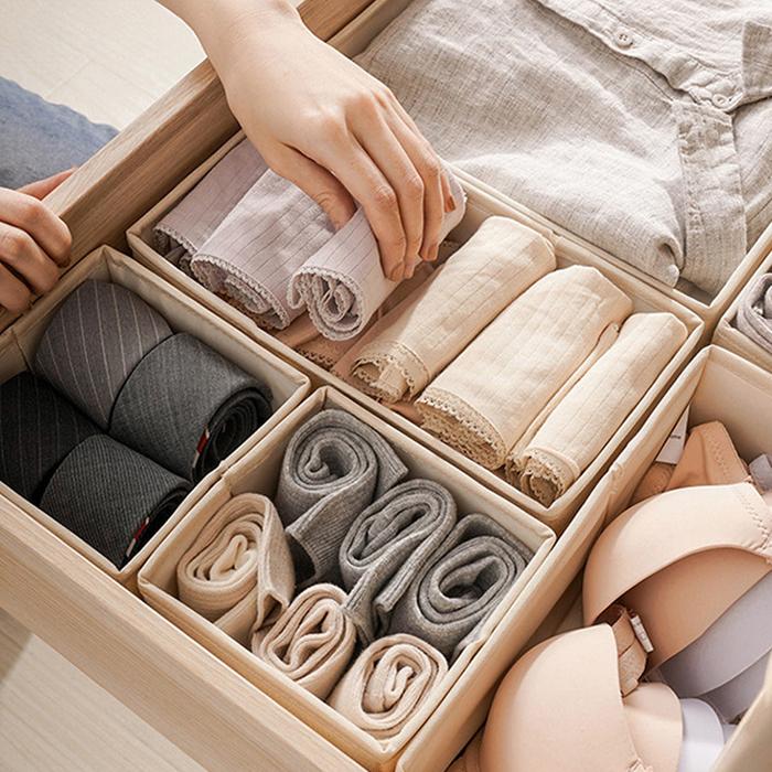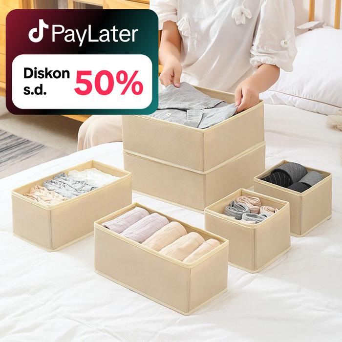 6PCS SET KOTAK PENYIMPANAN SERBAGUNA STORAGE BOX 2 IN 1 TEMPAT PENYIMPANAN MULTIFUNGSI - 6PCS-KREM