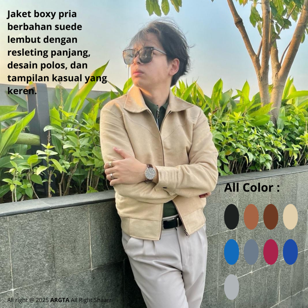 Jacket Boxy Pria Suede Jaket Work Boxy Zipper Panjang Polos Pria Kasual Suede Lembut Keren Jacket Boxy Pria Suede Jaket Work Boxy Zipper Panjang Polos Pria Kasual Suede Lembut Keren