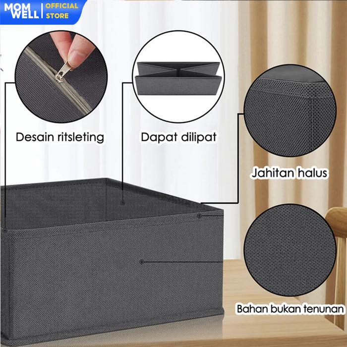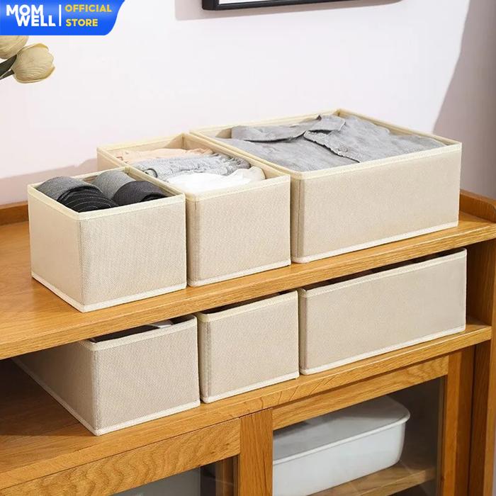 MOMWELL KOTAK PENYIMPANAN SERBAGUNA SET 6 STORAGE BOX ORGANIZER KAIN SEKAT LEMARI TEMPAT PENYIMPANAN ABU PAKAIAN - KREM 6PCS