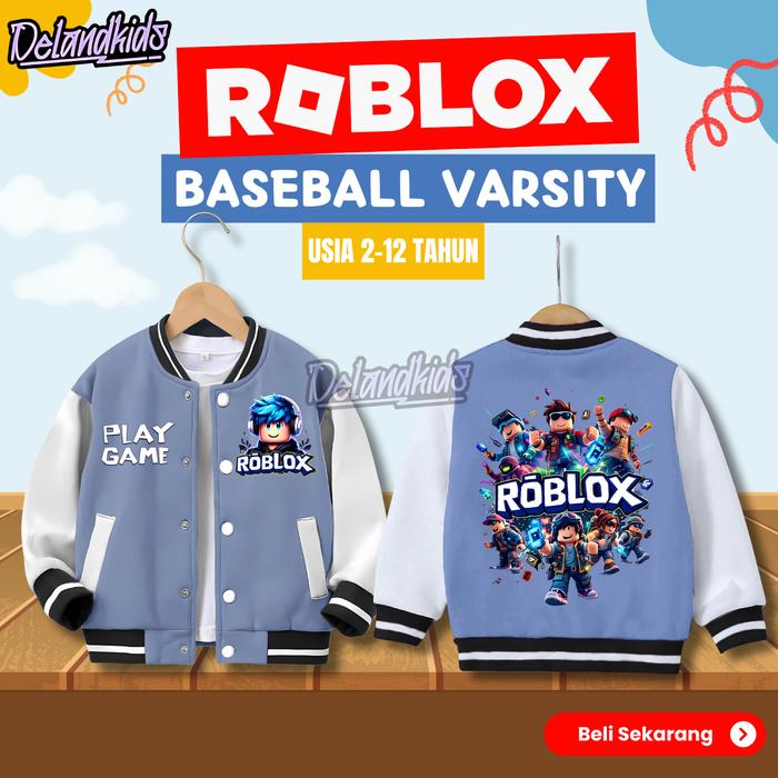DELAND- JAKET ROBLOX BASEBALL VARSITY ANAK LAKI-LAKI & PEREMPUAN USIA 2-12 TAHUN BAHAN COTTON FLEECE DESAIN SRTY & STYLIS - BASEBALL ROBLOX HITAM, M 2-3 TAHUN