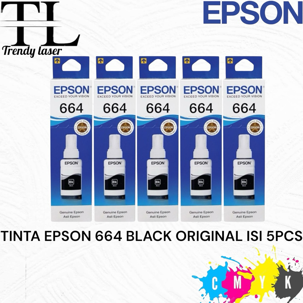 Paket ISI 5PCS TINTA PRINTER EPSON 664 T664 70ML Black ORIGINAL