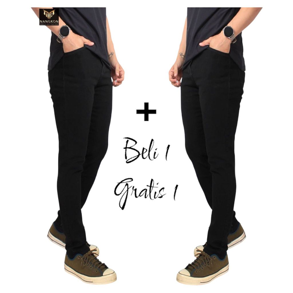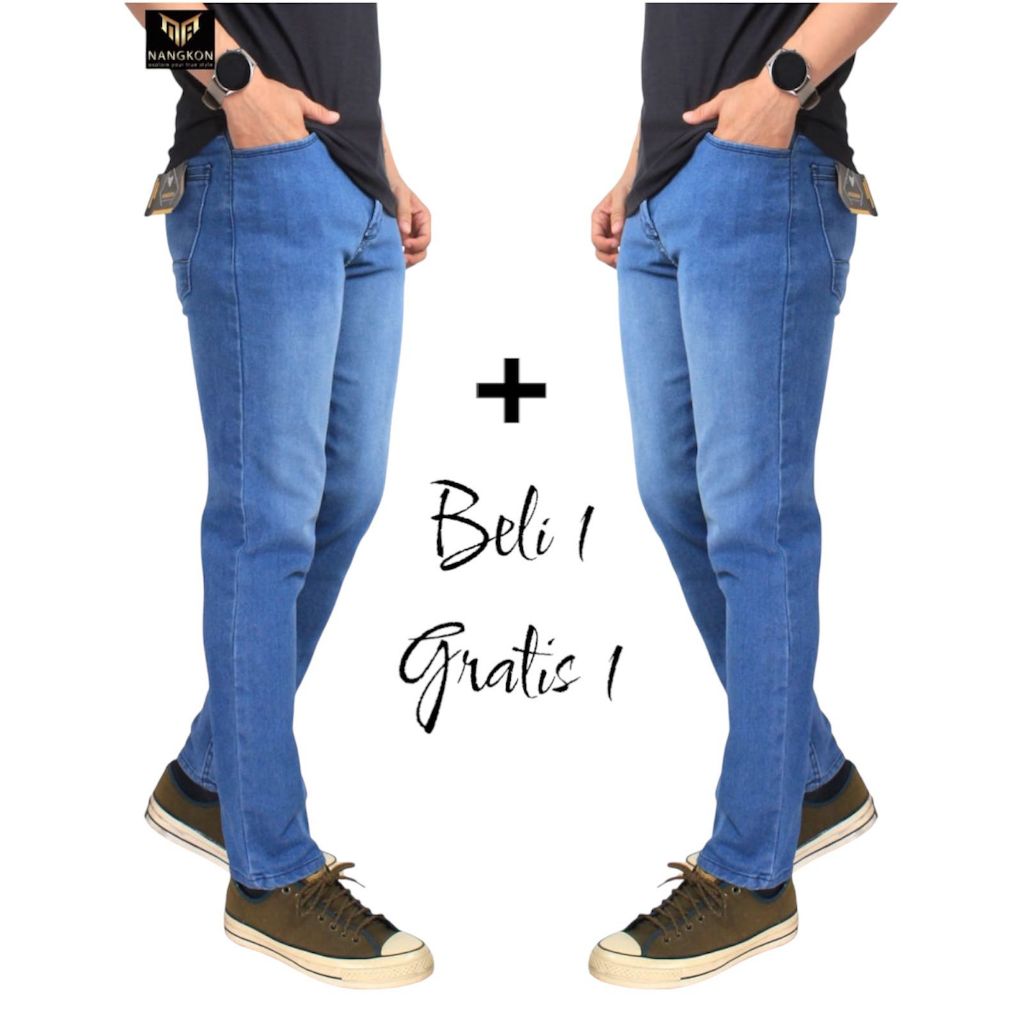 Paket Hemat Beli 1 Gratis Satu Celana Jeans Pria Slimfit NANGKON Bahan Melar Pensil Cowok Strech