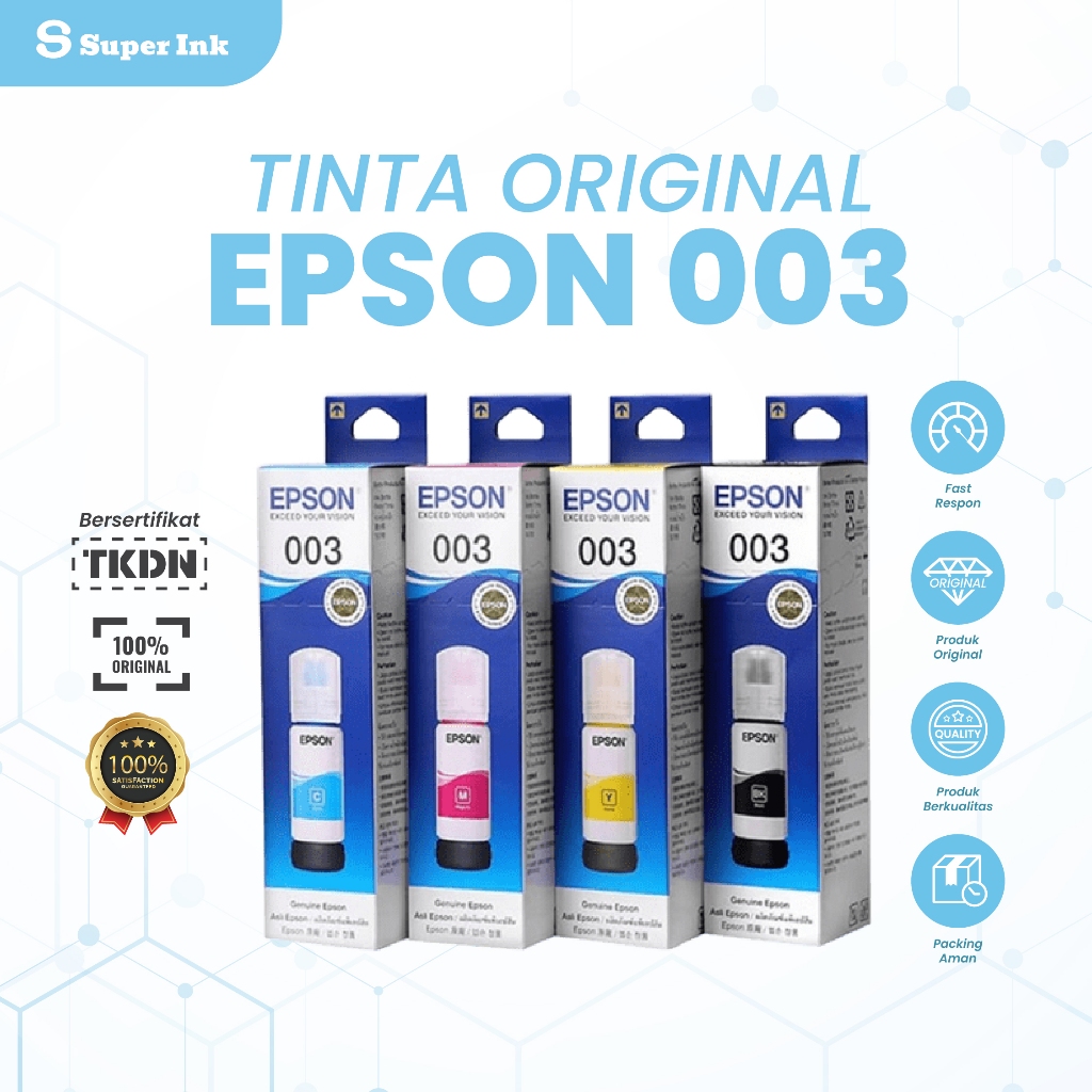 Tinta Printer EPSON 003 Original 1 Set 100 PERSEN L1110, L3100, L3101, L3110