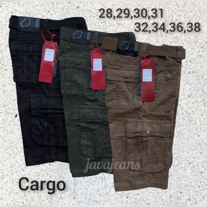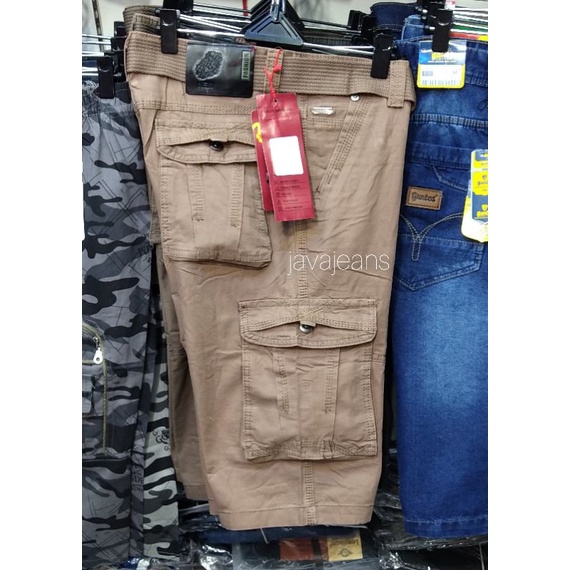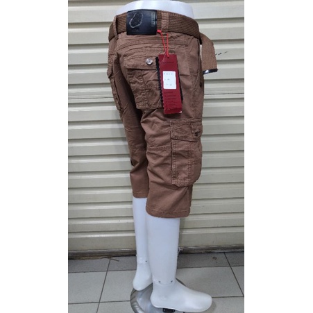 Celana cargo pendek BAWANG CHENG "original" katun twiil gratis ikatpinggang