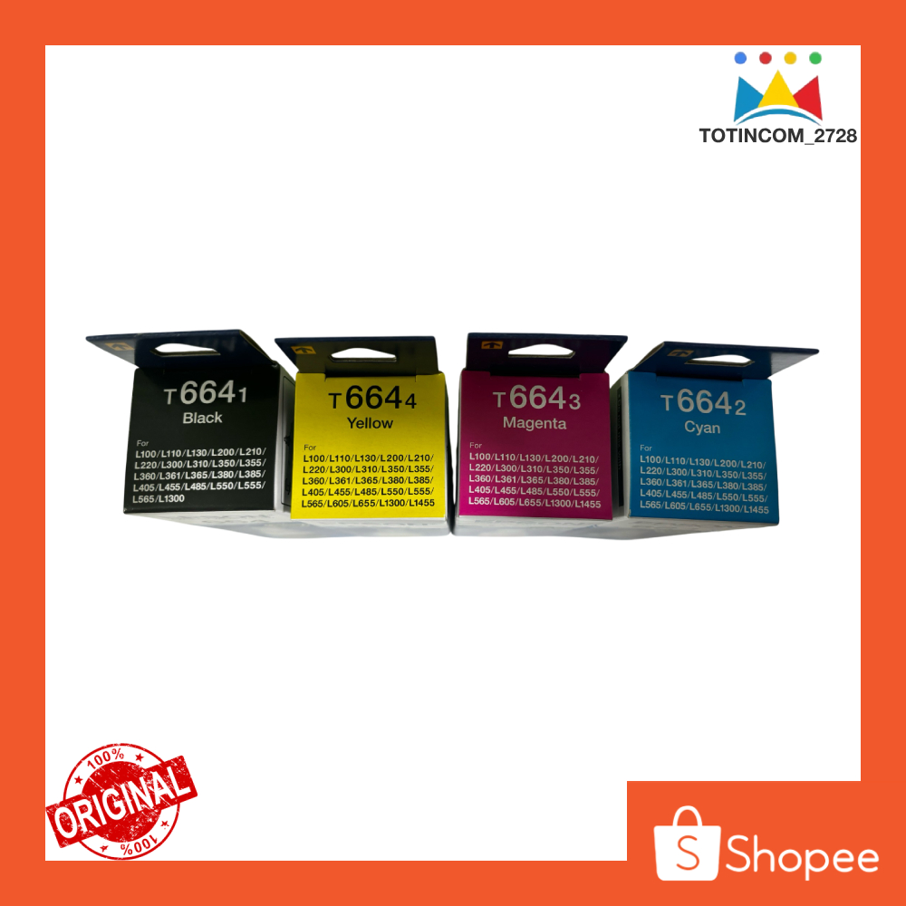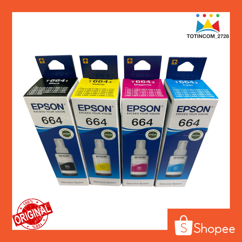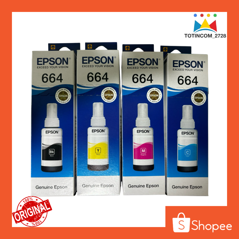 Tinta Epson 664 Original Hitam merah biru kuning untuk Printer L121 120 100 310 300 605 655 1460