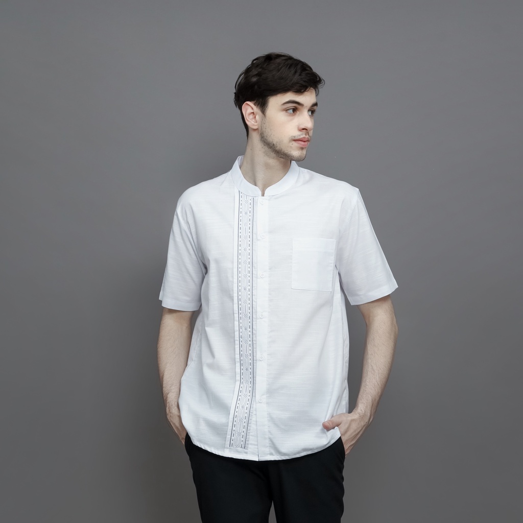 LOA STUDIOS - Baju Koko Kemeja Bordir Lengan Pendek Pria Putih - Kanz