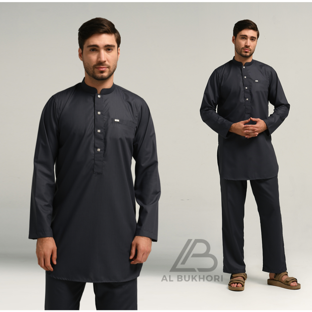Al Bukhori - TENCEL Koko Jubah Muslim Kurta Set Pakistan Pria Dewasa Lengan Panjang - Kurta Othman