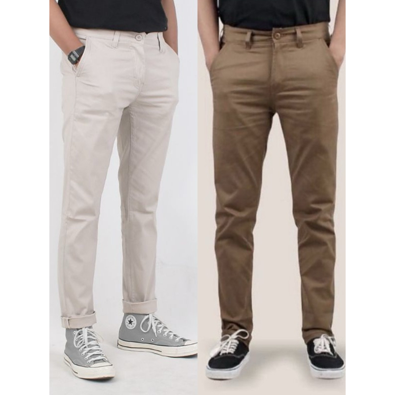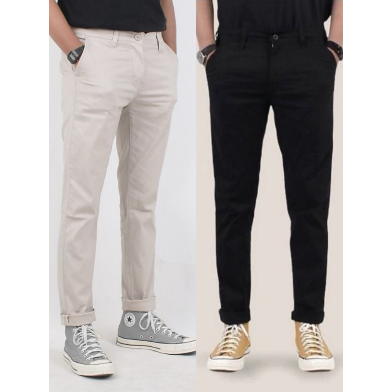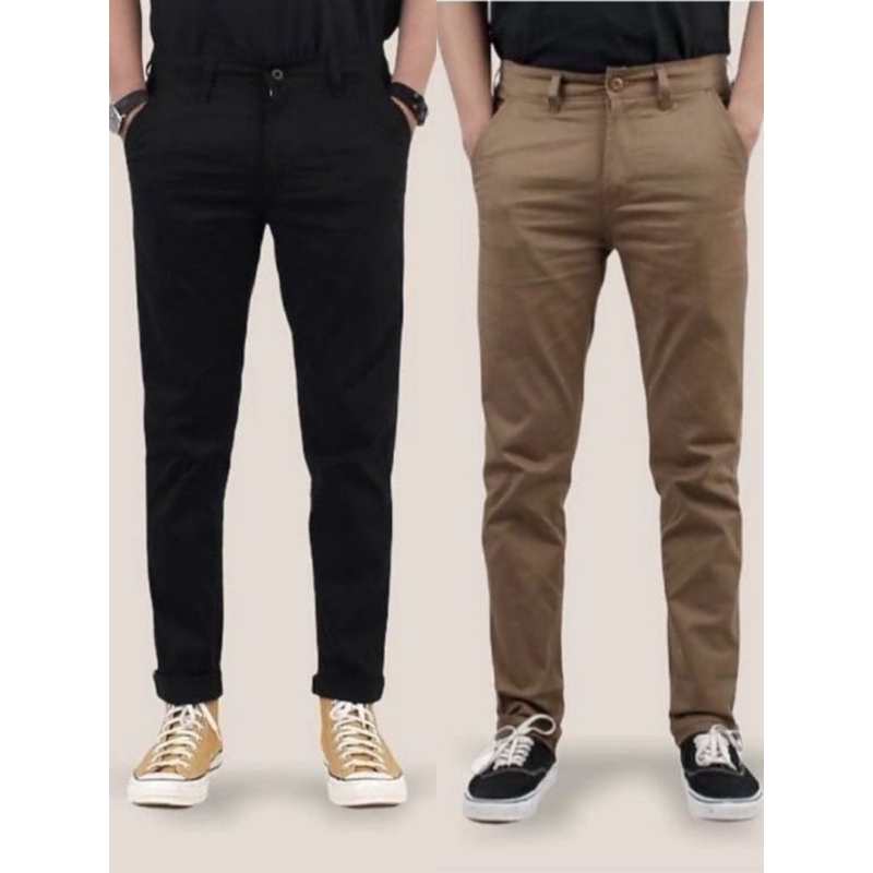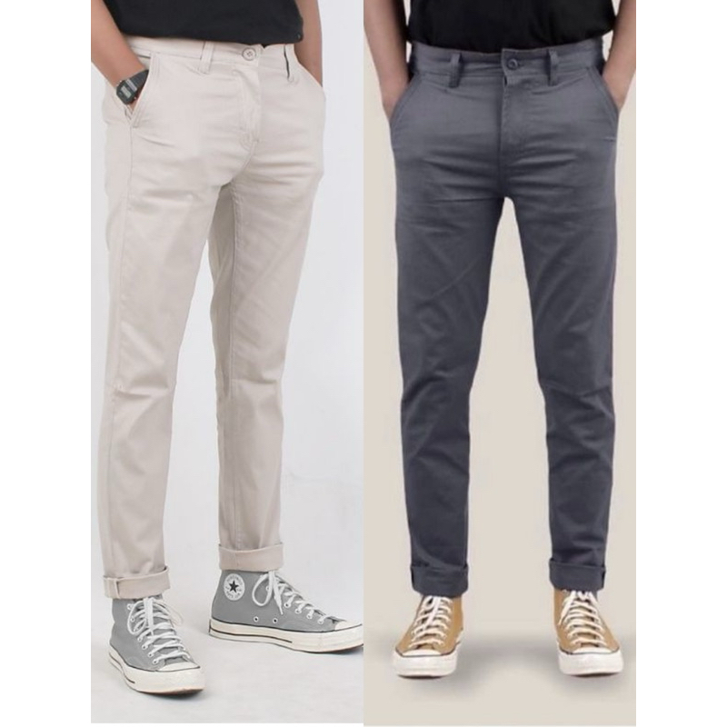 Paket Hemat 2PCS 90rb Celana Chino Panjang Slim fit Bahan Combed Melar Pria Dewasa