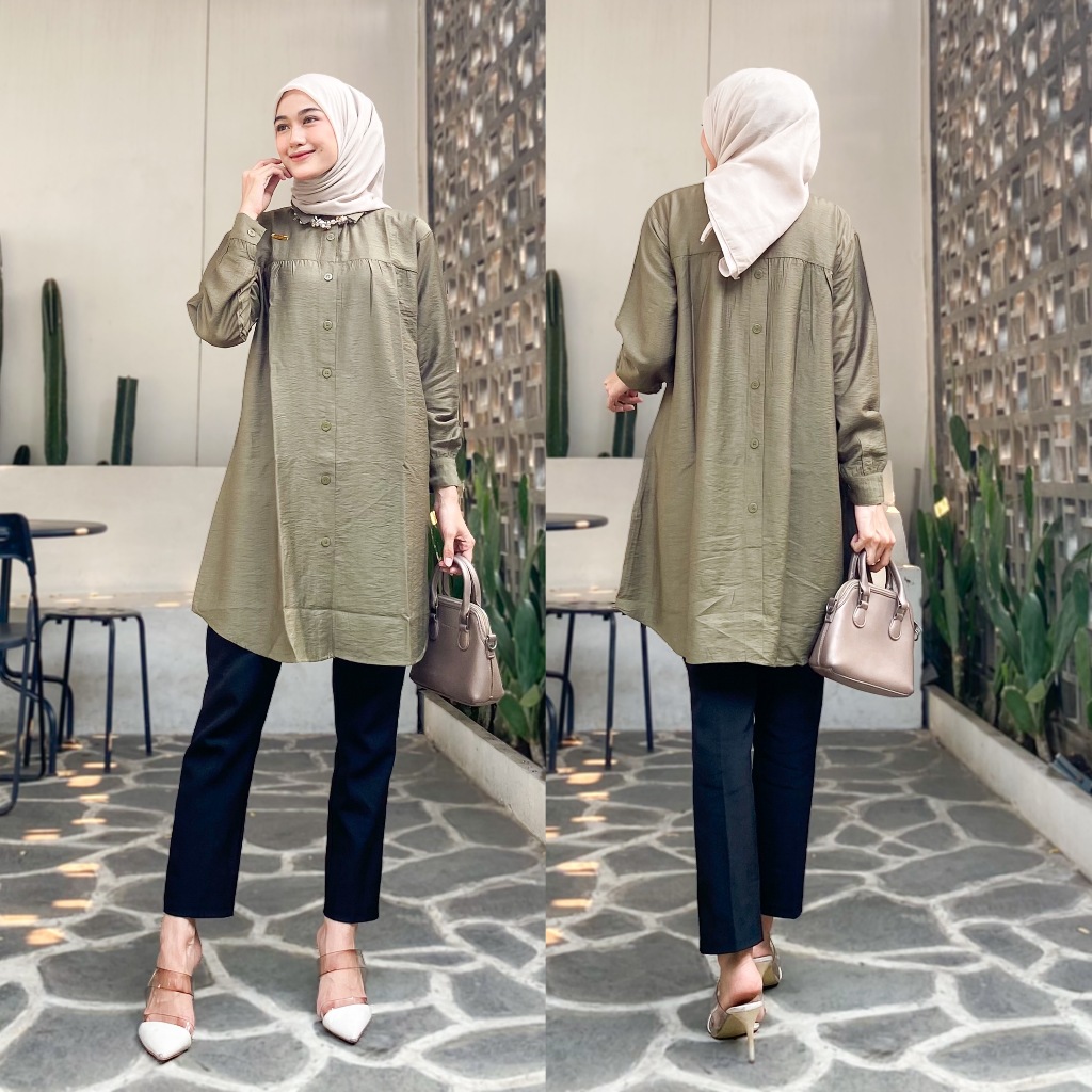 Tunik Polo Linen Ld 110Cm Dan Ld 125Cm Variasi Kancing Belakang Tunik Polo Linen LD 110cm dan LD 125cm Variasi Kancing Belakang