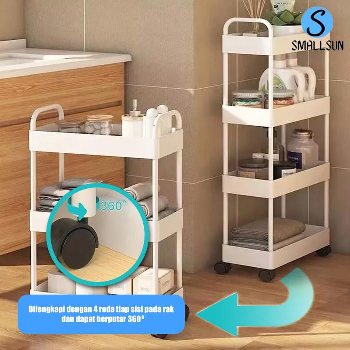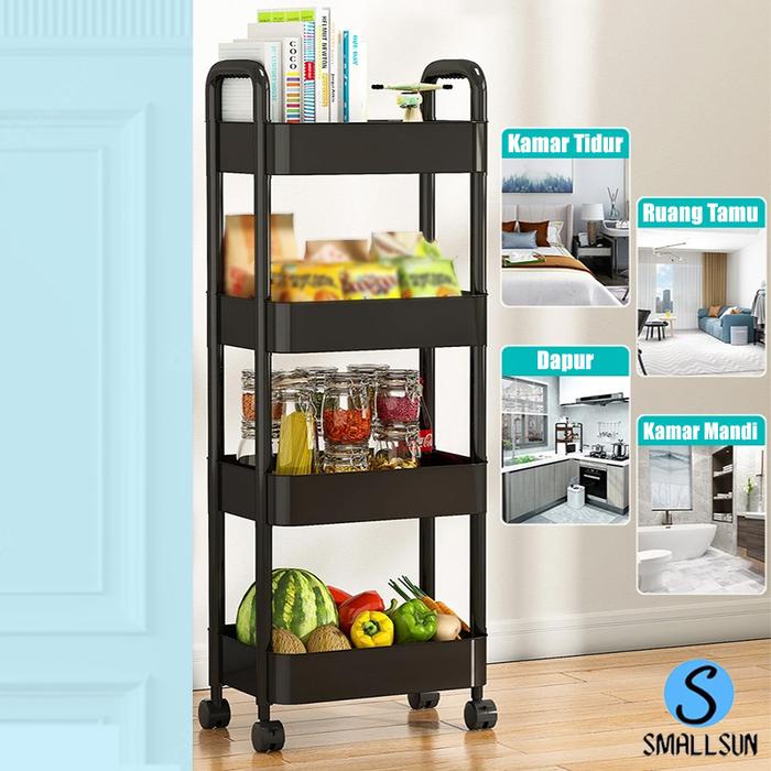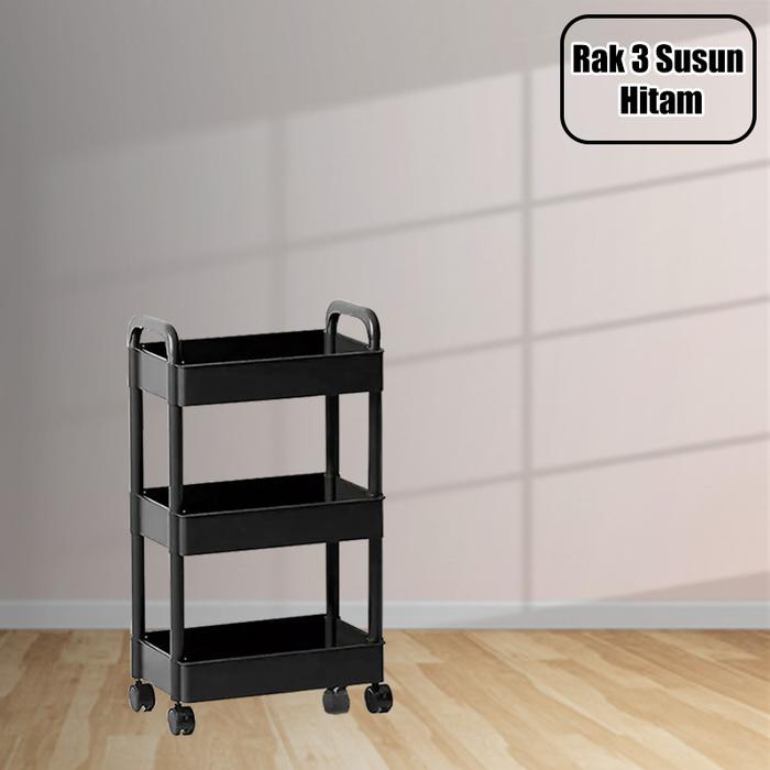 SS RAK SUSUN TROLI 4 SUSUN SERBAGUNA DENGAN RODA PEGANGAN RAK TROLY KAMAR MANDI BAHAN PLASTIK - 3 SUSUN HITAM