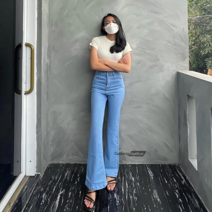HIGHWAIST CUTBRAY JEANS WANITA PREMIUM CELANA PANJANG LOS DENIM MELAR CEWEK KARET HITAM DEWASA - GREEY, 27