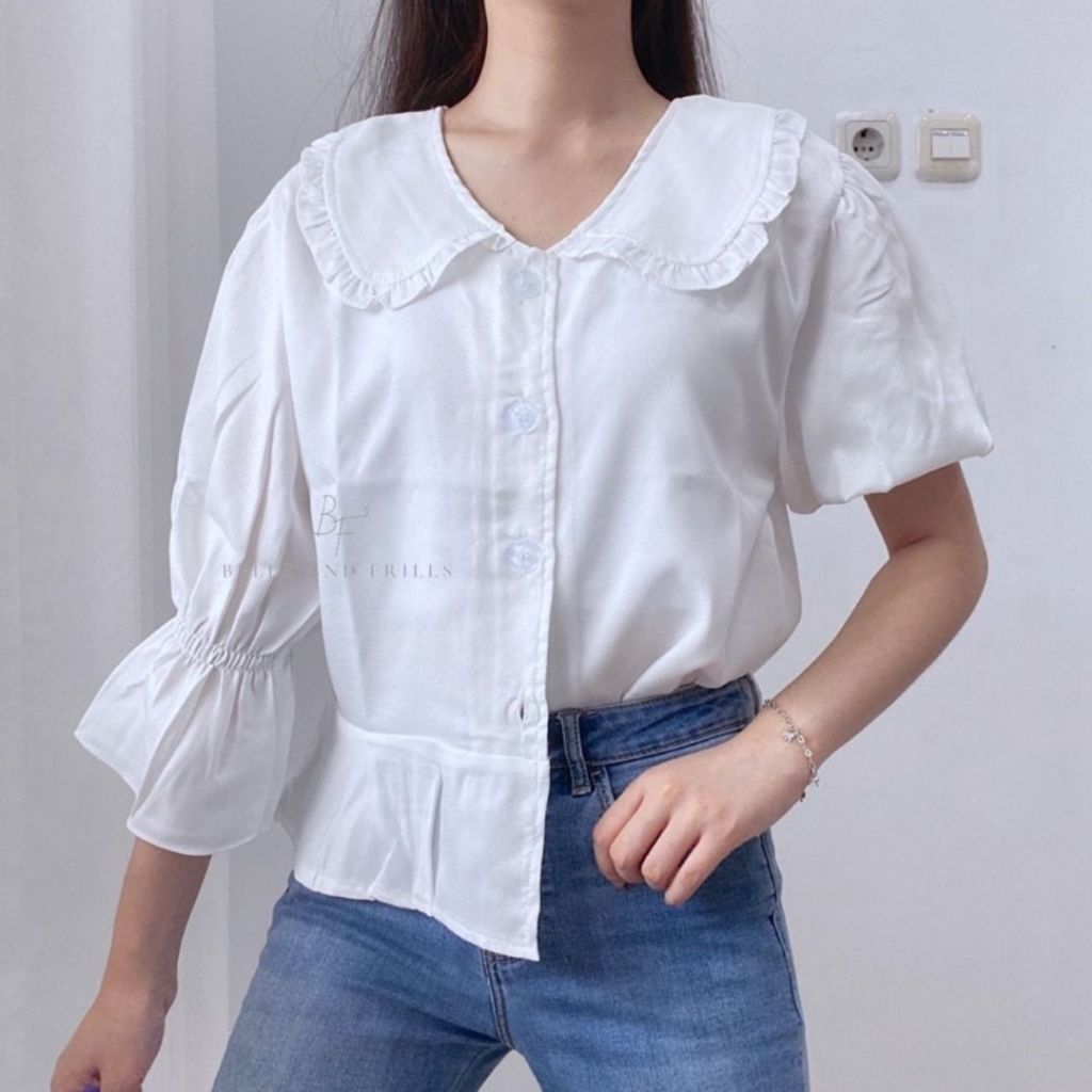 Shirt Ruffle Blouse Top Korean Collar Blouse Puffy Sleeves Button Balon Puff Sleeve Shirt Ruffle Blouse Top Korean Collar Blouse Puffy Sleeves Button Balon Puff Sleeve