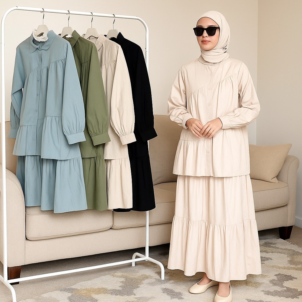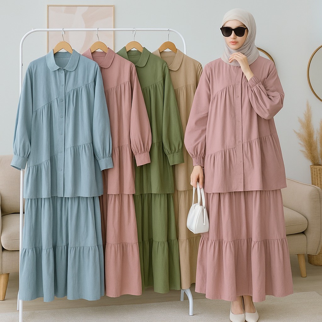 Setelan Rok Wanita Muslim Remaja Linen Rami Premium Kekinian Terbaru Caterine Set 2In1