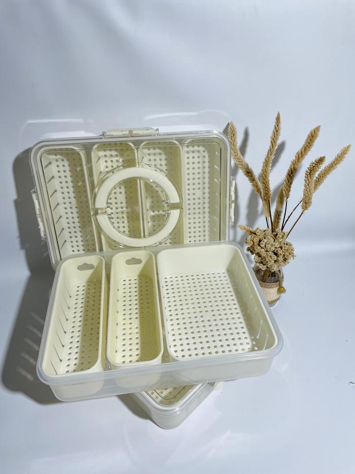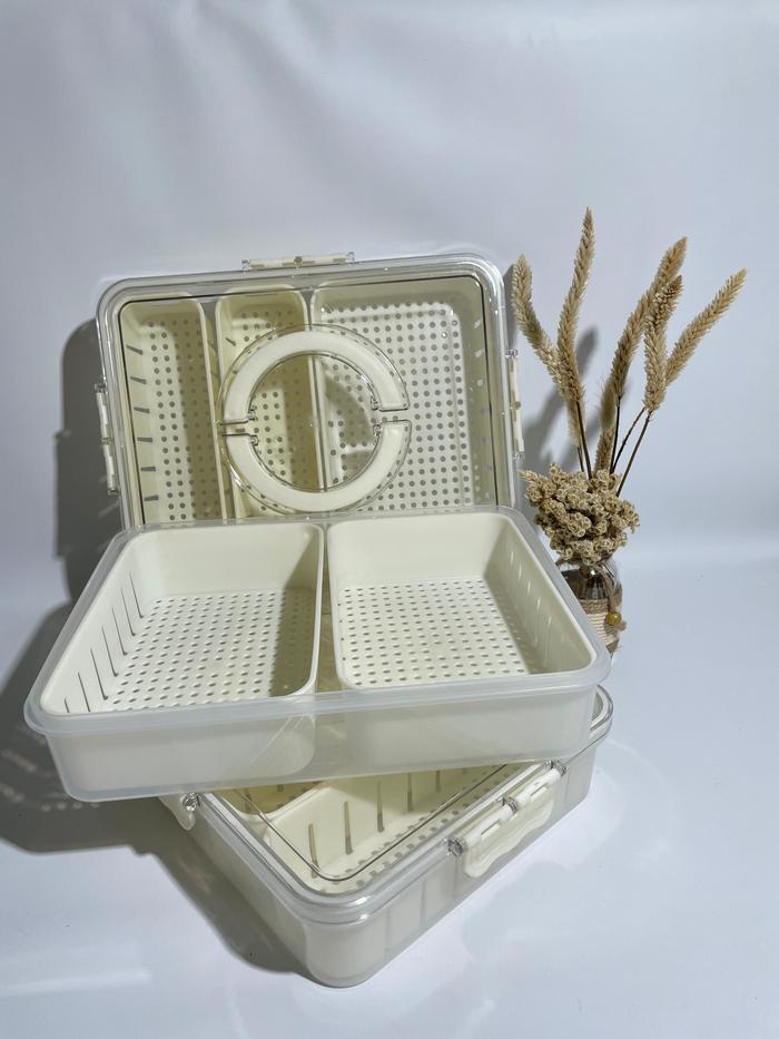KONTAINER KULKAS TEMPAT PENYIMPANAN MAKANAN DENGAN SARINGAN DAN TUTUP TRANSPARAN PENUTUP PENYEGELAN SN-0013 WADAH BAHAN PLASTIK PP 5 - SEKAT 4