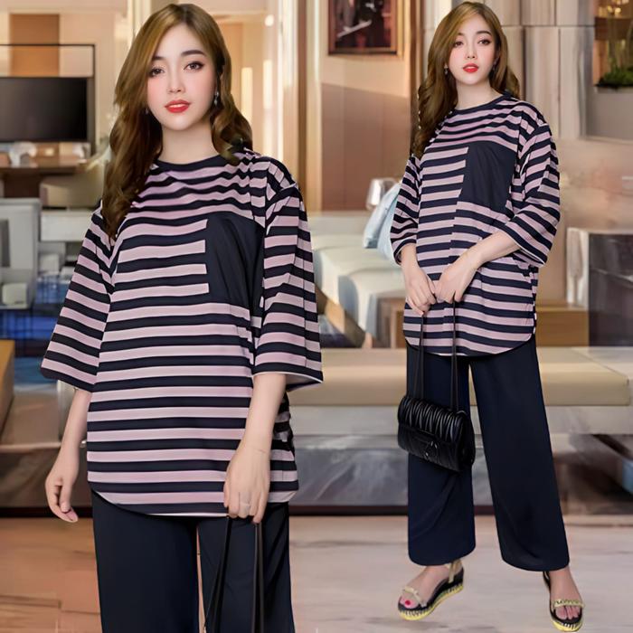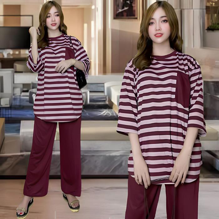 AUFAA ONESET ATASAN OVAL KANTONG DADA LD 120 VISTATERRY MOTIF SALUR CELANA KARET WANITA SETELAN BAJU BASIC PANJANG OVERSIZE - COFFE, LD 120
