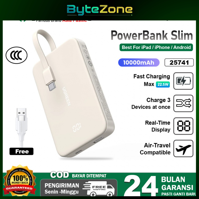 [Mall] UGREEN Powerbank 10000/20000mAh, Built-in Cable USB-C, PD Fast Charging 20W 22.5W + Digital Display✨
