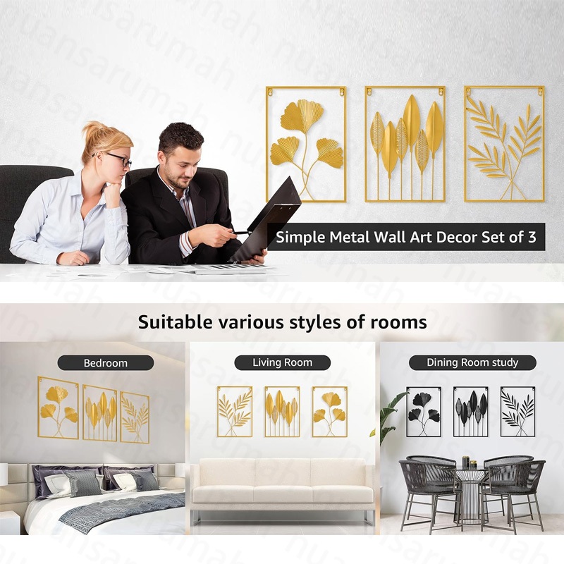 Wall Decor Dinding Besi Sofa Ruang Tamu Kreatif Modern Latar Belakang Dinding/Hiasan Dinding Frame Metal Gold Daun Leaf Ginko