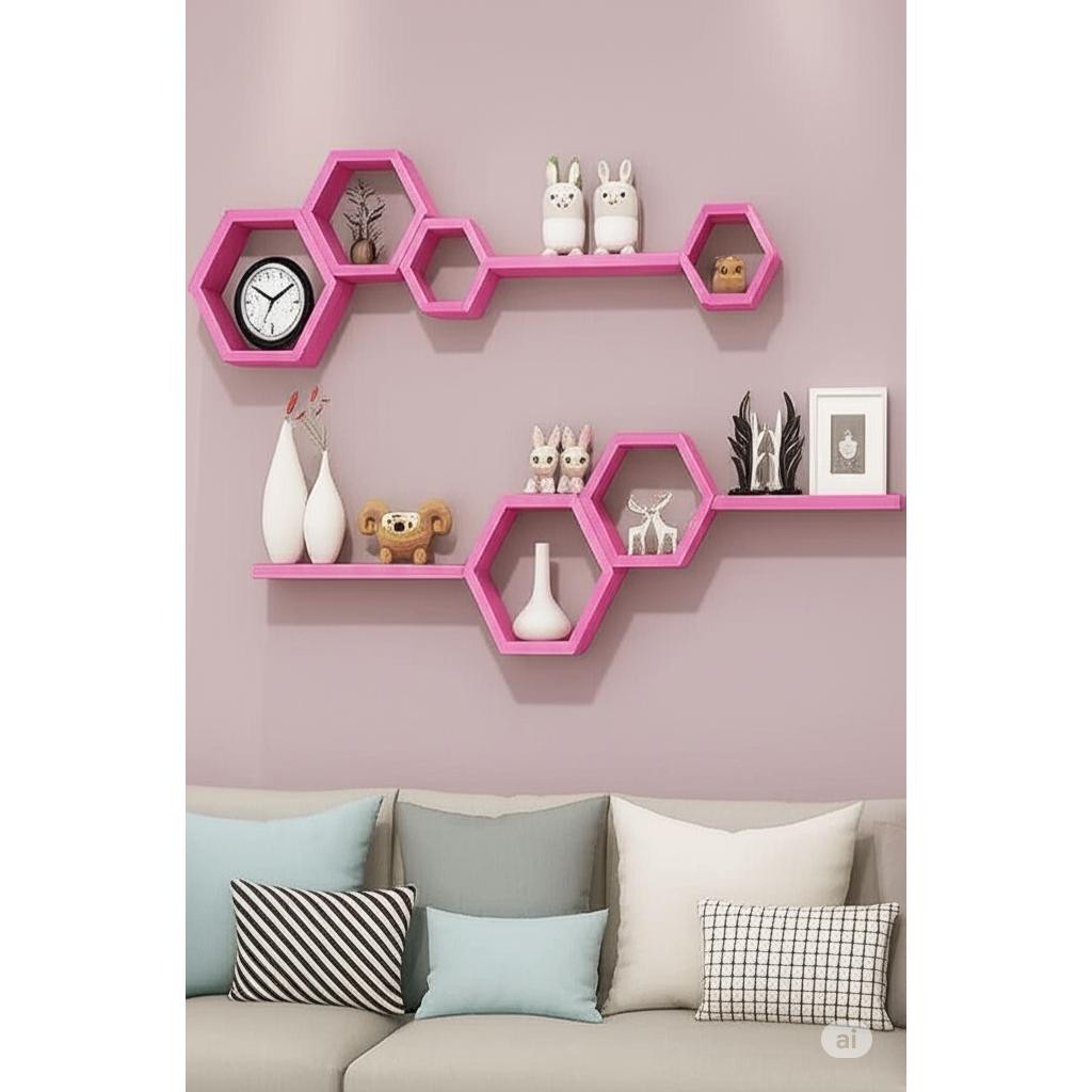 Rak hexagonal dinding hexagonal 1set ambalan hiasan dinding rak hexagonal estetik kayu pajangan kayu