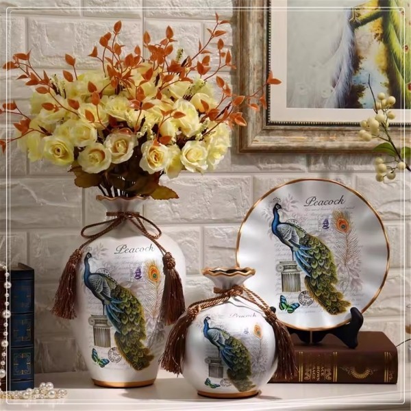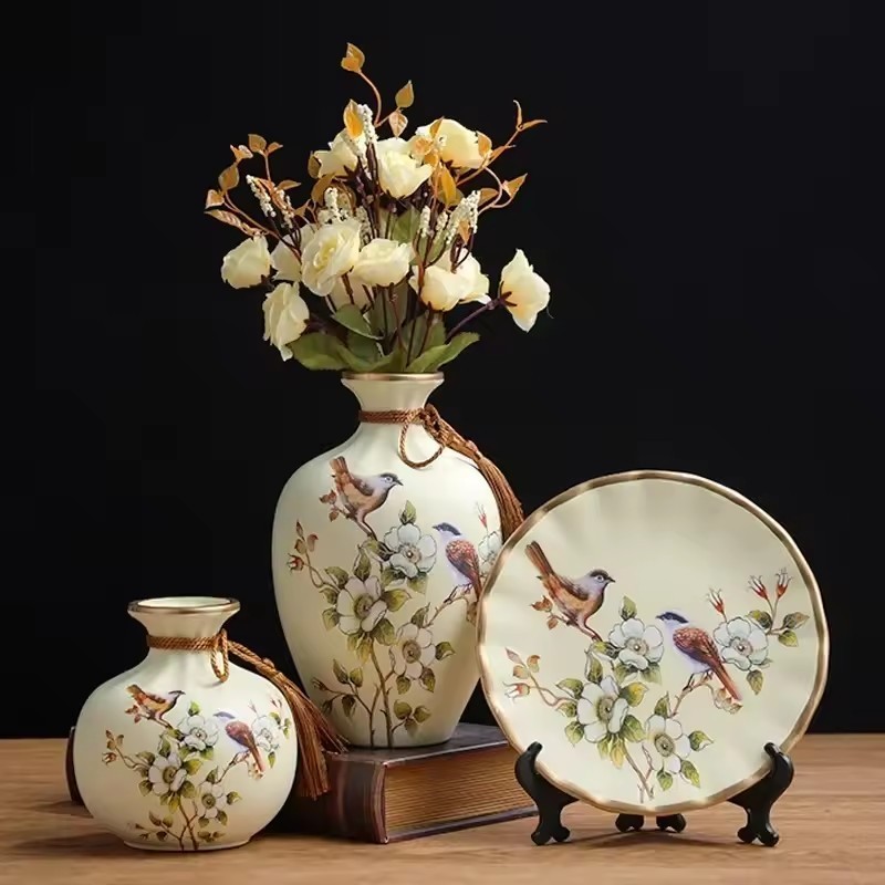 New VAS Bunga Pajangan SET 3PCS Dekorasi Rumah Model Oriental Eropa VAS Antik Klasik Guci / Dekorasi Vas Bunga Blossom Eropa Retro Set Keramik