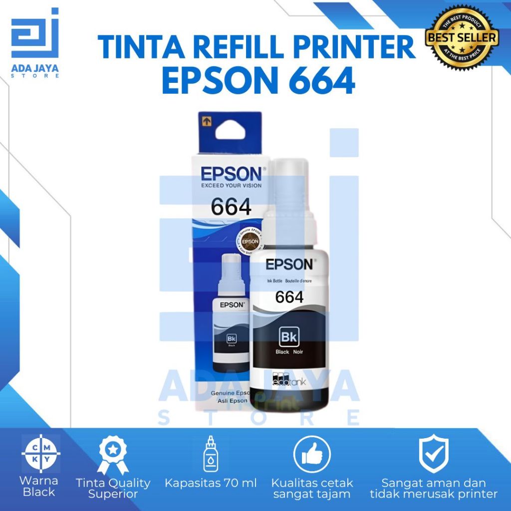 1 SET TINTA EPSON 664 Black, Cyan, Magenta, Yellow L100, L110, L120, L200, L210, L220, L300, L310, L360, L355, L350, L365, L455, L550, L555, L565, L655, L1300