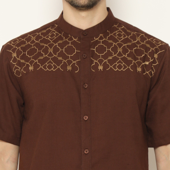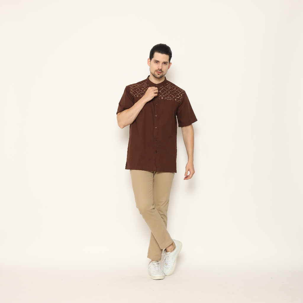 AMK Kemeja Koko Pria Lengan Pendek KK HADDID S/S Brown
