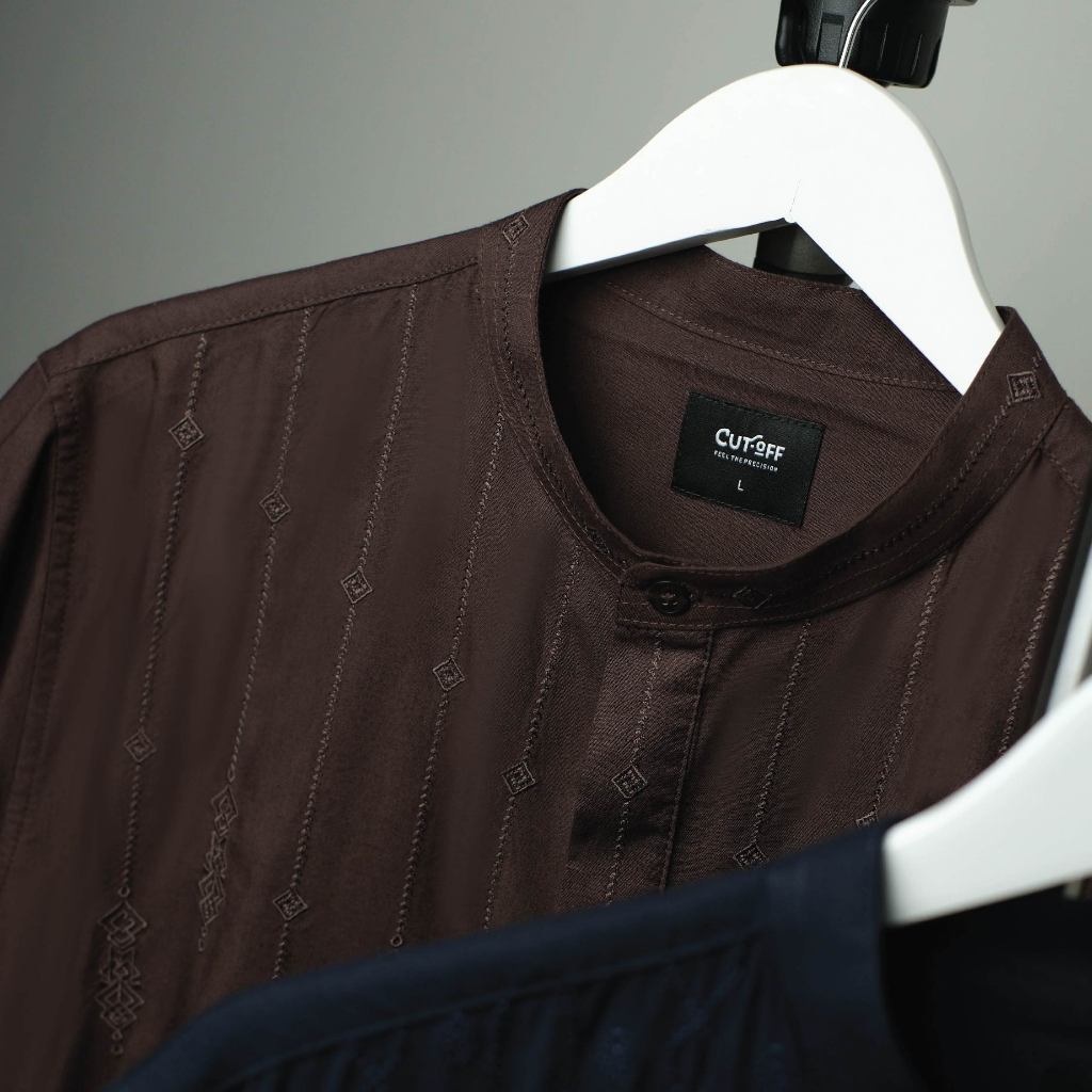 CUTOFF Rayyan Kemeja Koko Cotton Rayon Kasual Bordir Basic Polos Pria Lengan Pendek