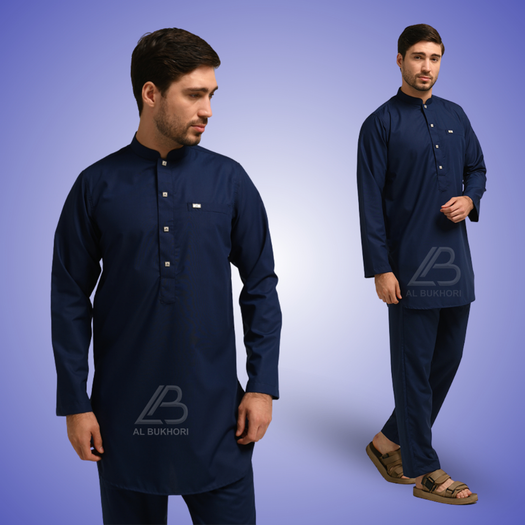 Al Bukhori - TENCEL Koko Jubah Muslim Kurta Set Pakistan Pria Dewasa Lengan Panjang - Kurta Othman
