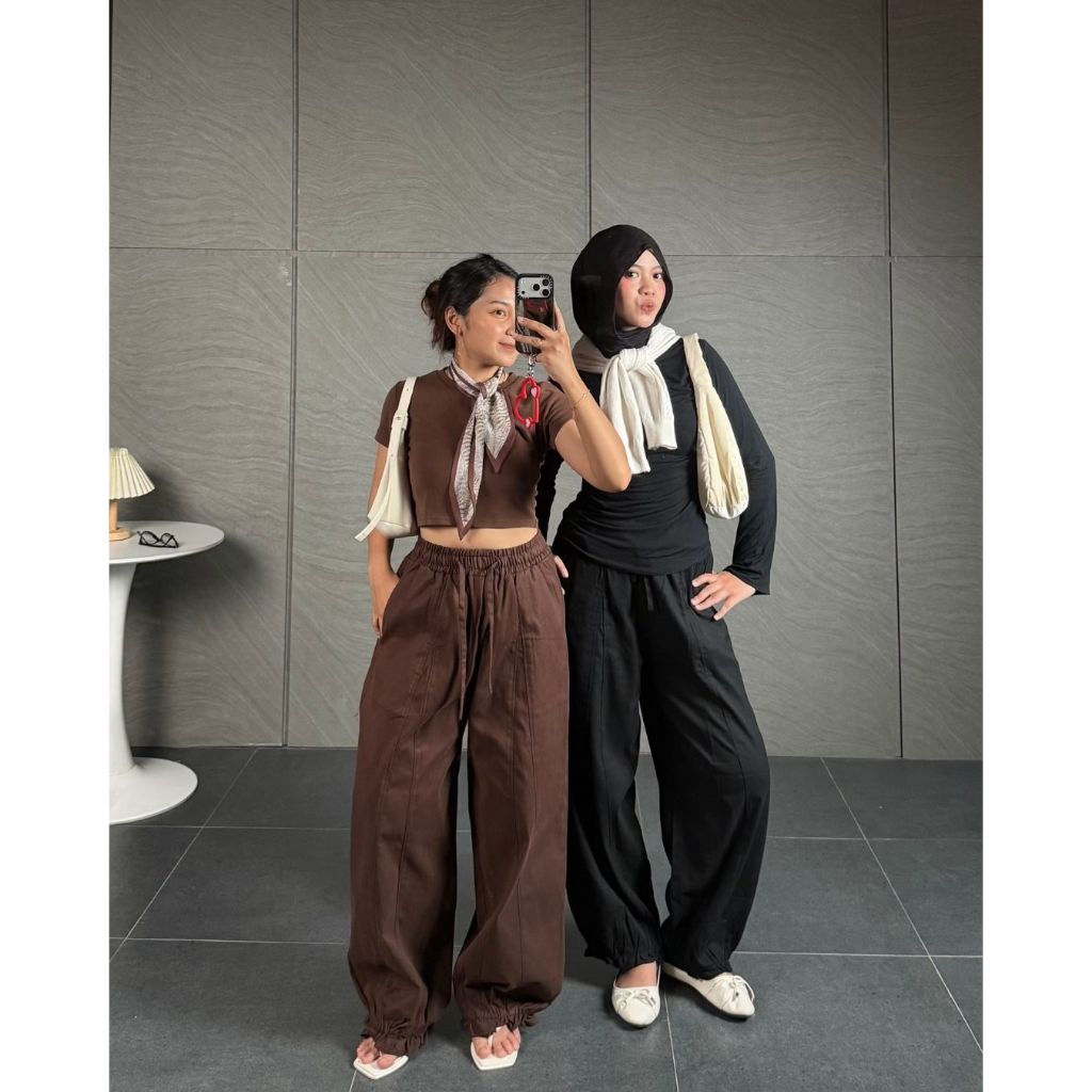BYACLOTH Celi Barrel Pants Celana Panjang Wide Leg Dengan Wrinkle Adjustable Wide Pants Celana Panjang Wanita Sporty Stretwear