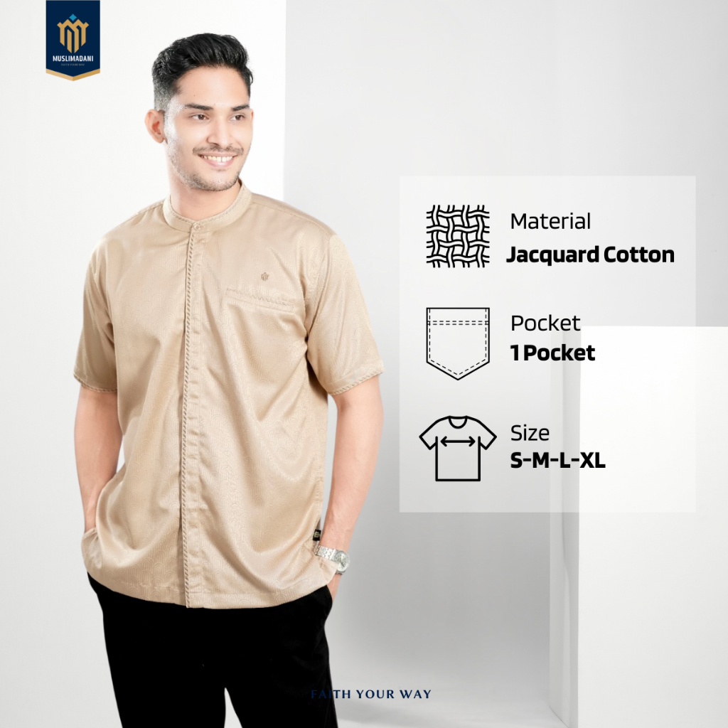 Muslimadani Baju Koko ASHRAF Kemeja Koko Lengan Pendek Ekslusive Pakaian Muslim Pria