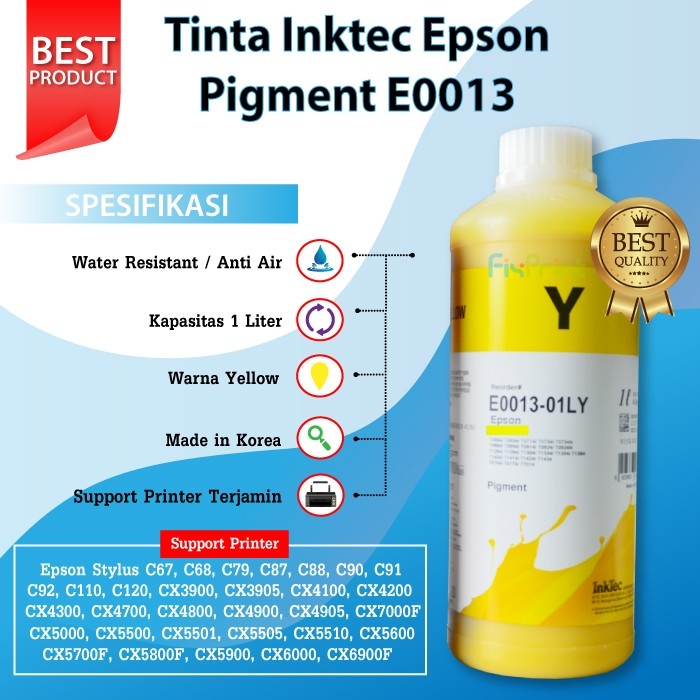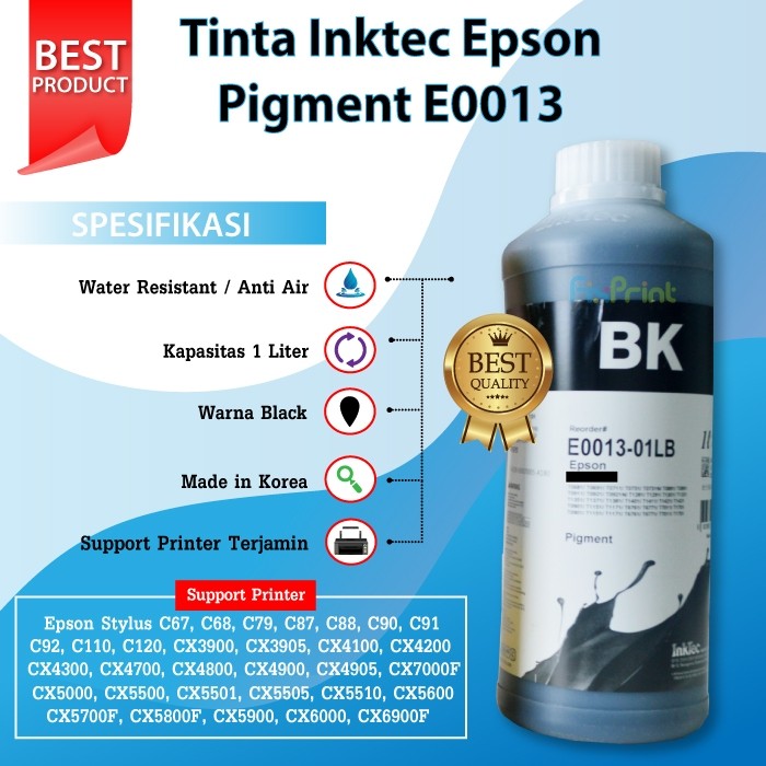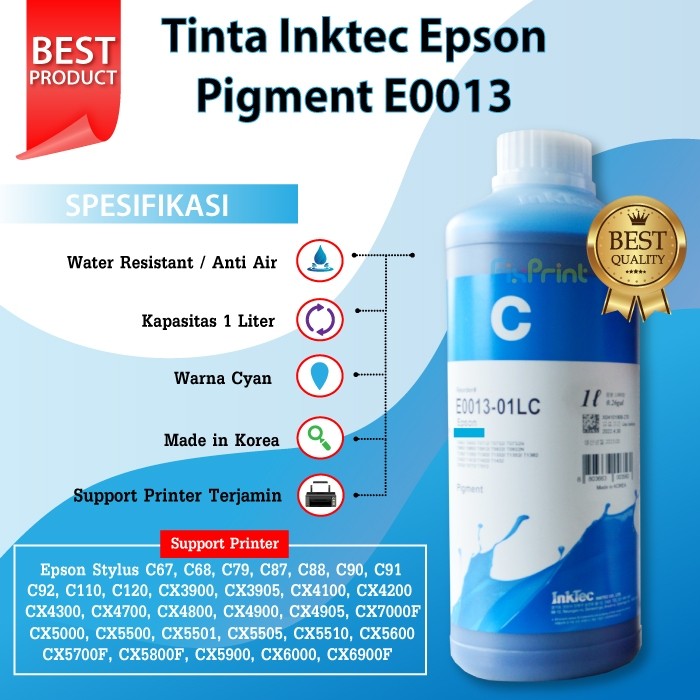 Tinta Pigment InkTec E001301L Black Cyan Magenta Yellow 1 Liter Refill Printer Epson Pigment Pigmen Ink