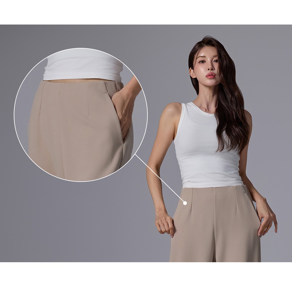 Celana Panjang Wanita Semi Formal Bahan Crepe Pinggang Karet HighWaist Anti Begah Urban WideLeg Pants STL9593