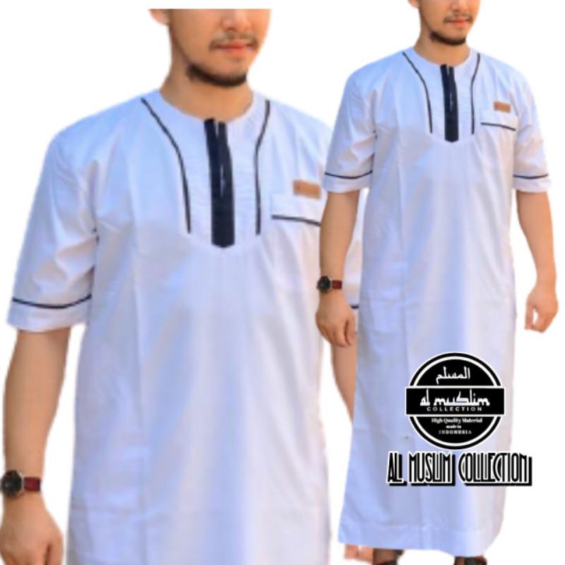Al muslim Gamis jubah Pria lengan pendek/ baju haji dan umrah/AL MUSLIM / jubah ikhwan/Jubah List Pendek