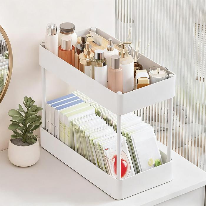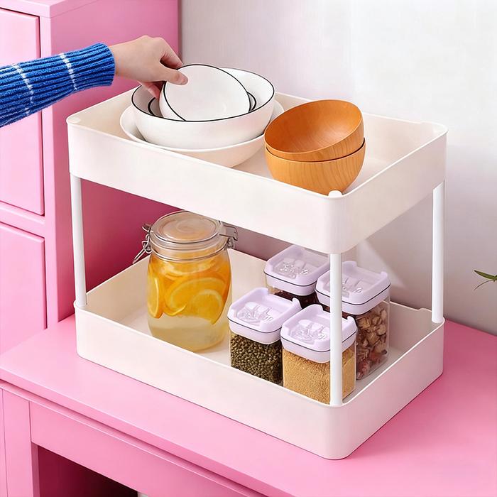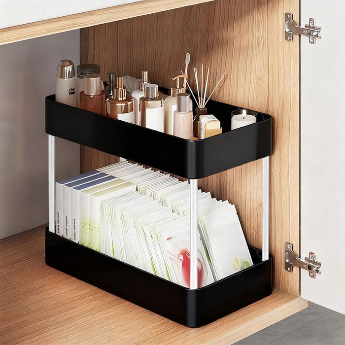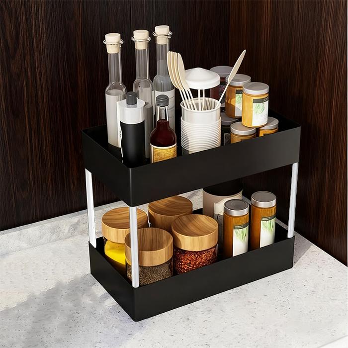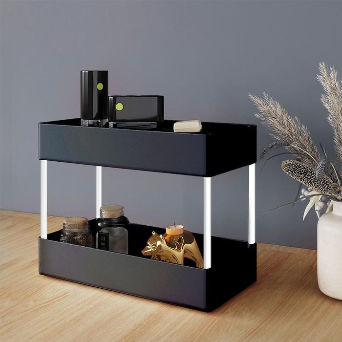RAK 2 TINGKAT SERBAGUNA: RAK DAPUR SQUARE / RAK KOSMETIK & SKINCARE / RAK SUSUN RTABLE UNTUK R SEMPIT - BLACK