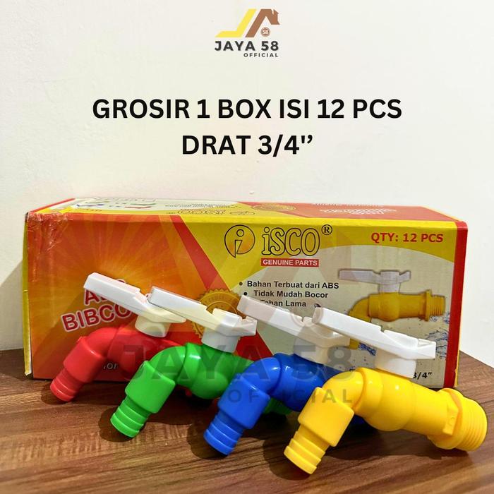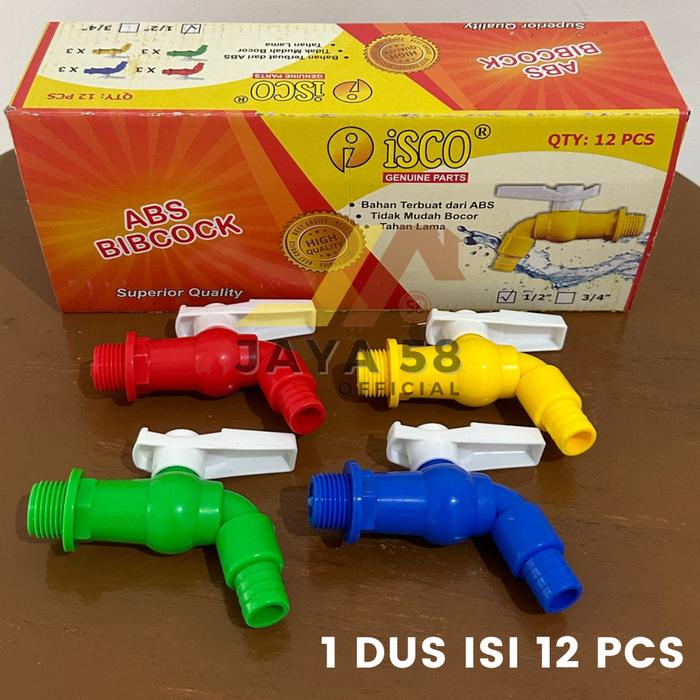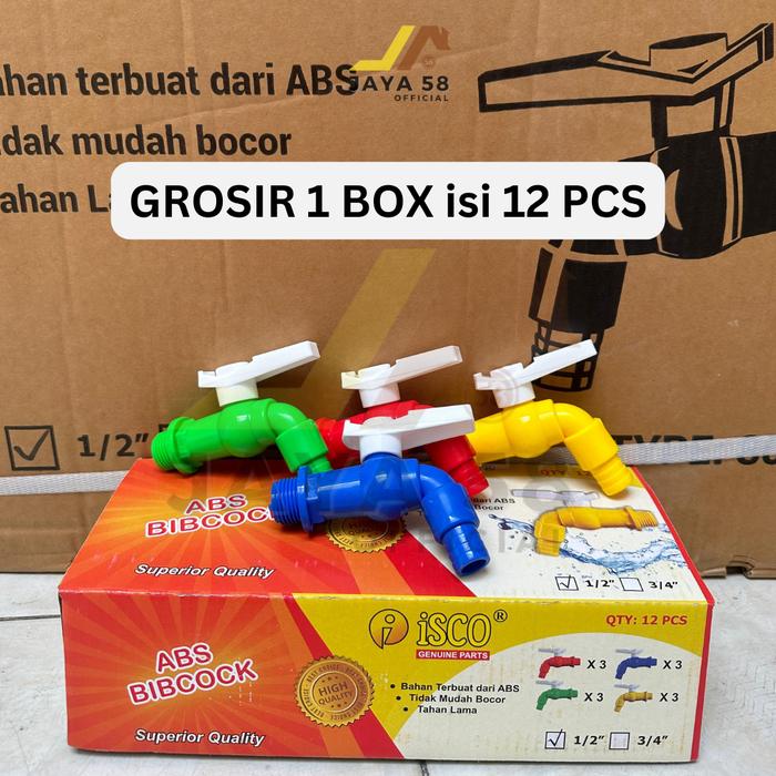 GROSIR 1 BOX 12PCS KRAN AIR MODEL ENGKOL 1/2 INCH ISCO / KERAN TAMAN TEMBOK PLASTIK HIJAU KUNING MERAH BIRU - 1/2" - 1 BOX 12PCS