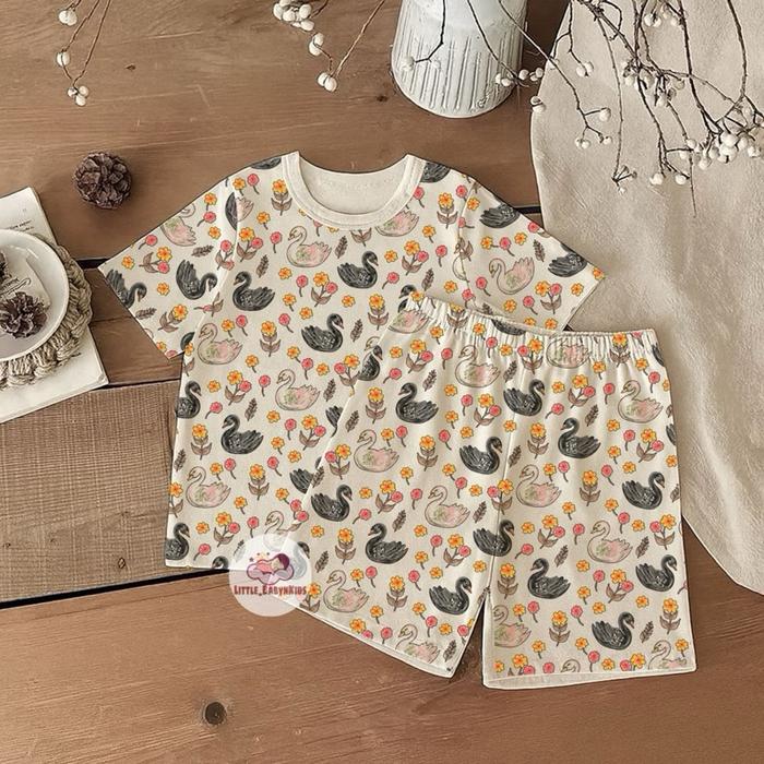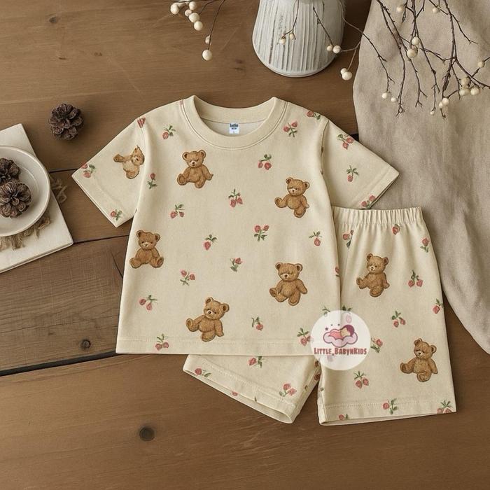 LITTLEVIN SETELAN ANAK PEREMPUAN FULL MOTIF CREAM SERIES KARAKTER 0-5 TAHUN - DEER FRIEND, S