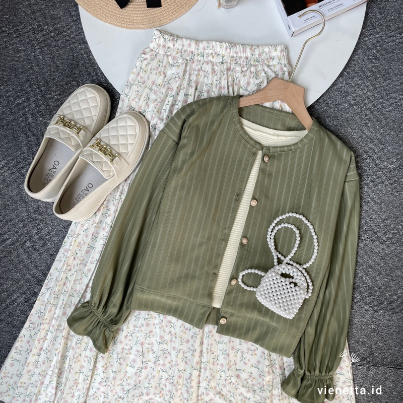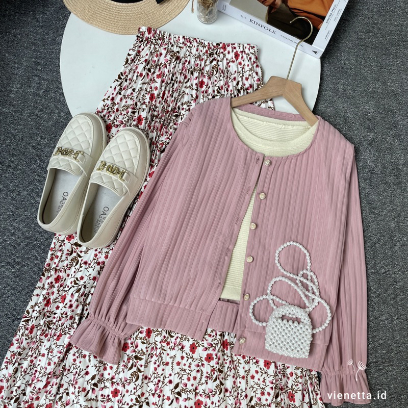 One Set Setelan Wanita Kekinian Rok Panjang Wanita Korean Style Atasan Knit Cardi Hornet Rok Motif Bunga