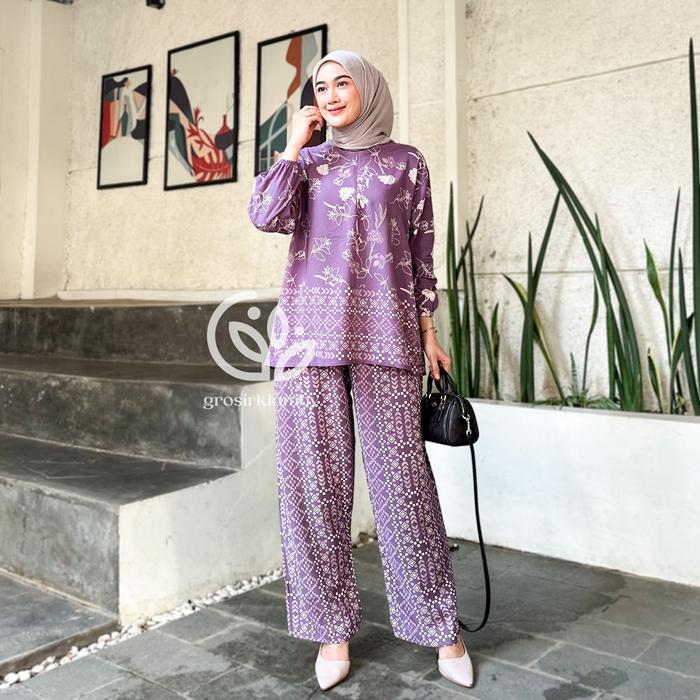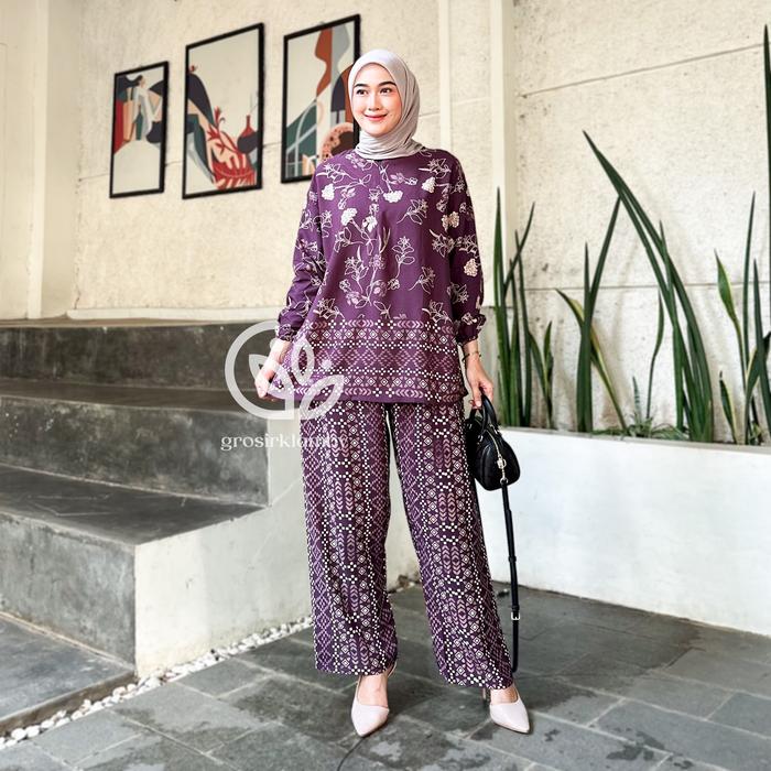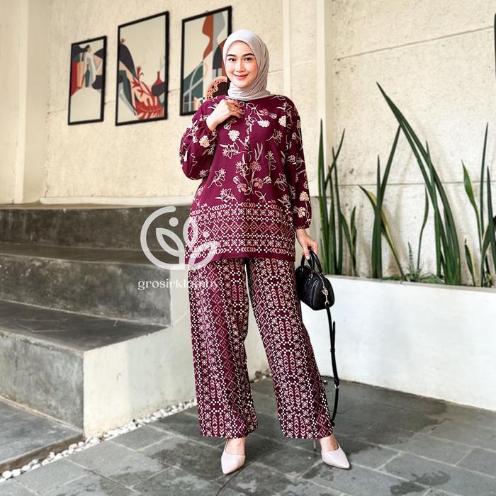 ONE SET LUSIANA RAYON PREMIUM BUSUI SETELAN WANITA ATASAN BAWAHAN CELANA PANJANG BATIK ADEM NYAMAN TEBAL - LUSIANA HITAM, JUMBO