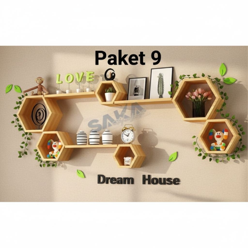 Rak Dinding Hexagonal Aestetic Satu Set Kayu Jati Belanda