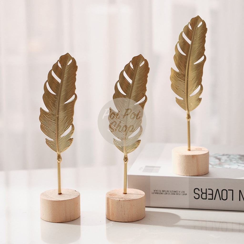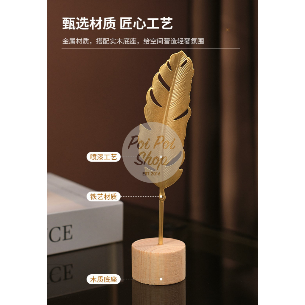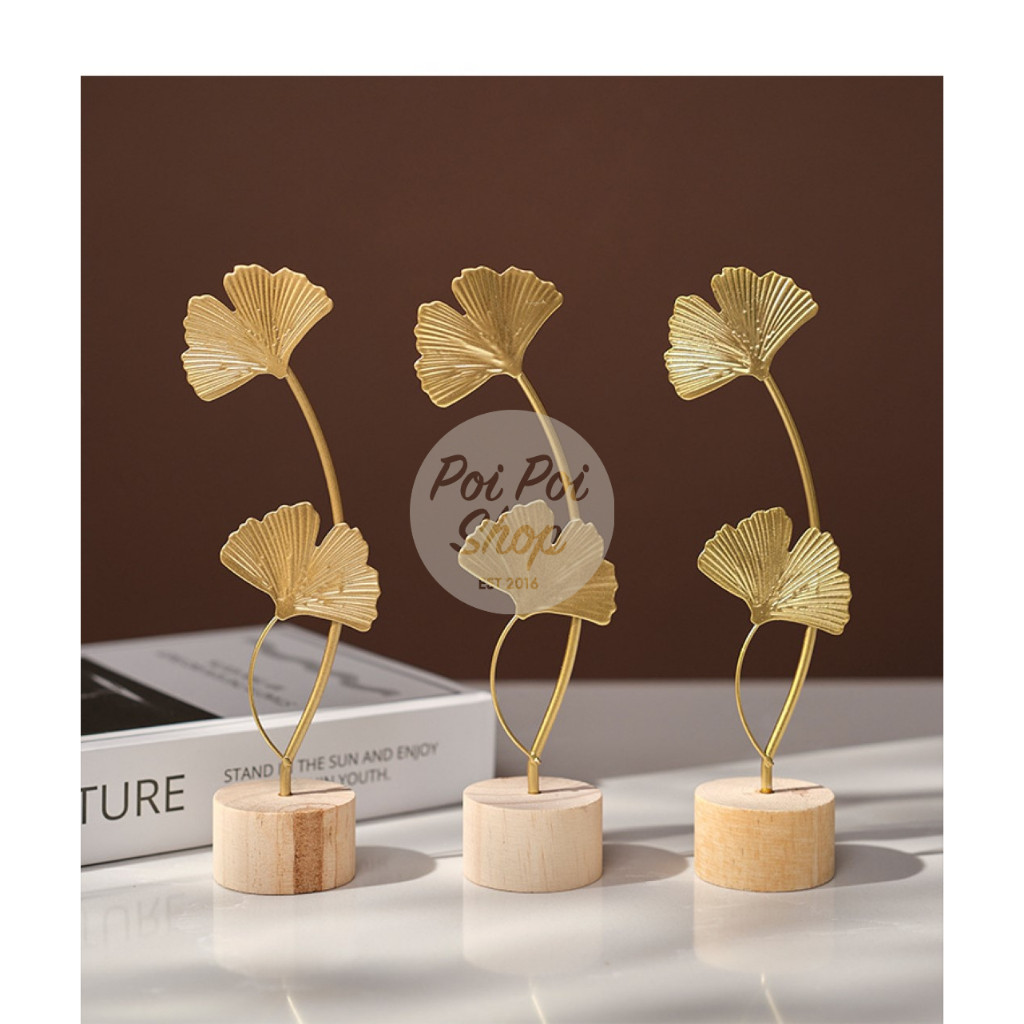 Pajangan Hiasan Rumah Nordic Daun Emas Gingko Mewah Base Kayu Ornamen Elegan Dekorasi Kamar Skandinavia Nordic Ruang Tamu Penyajian