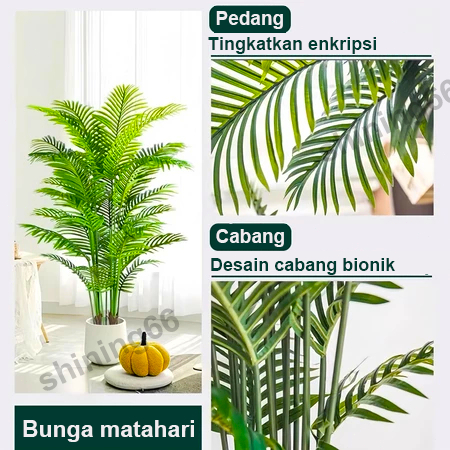 Pengiriman Cepat Tanaman hias Artificial palem kuning DAUN PALEM PLASTIK 95/85CM DAN POT DAUN PALEM PALEM JUMBO DAUN ARTIFICIAL