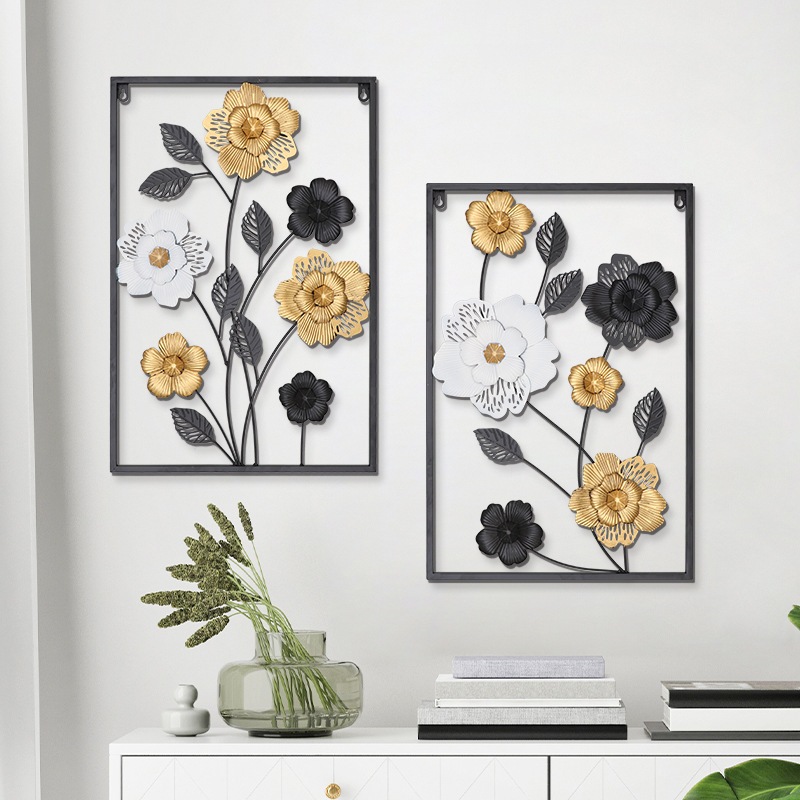 CELOGLO Hiasan Dinding Aesthetic Hiasan Dinding Bunga Kreatif Modern Latar Belakang Dinding Frame Metal Gold Daun