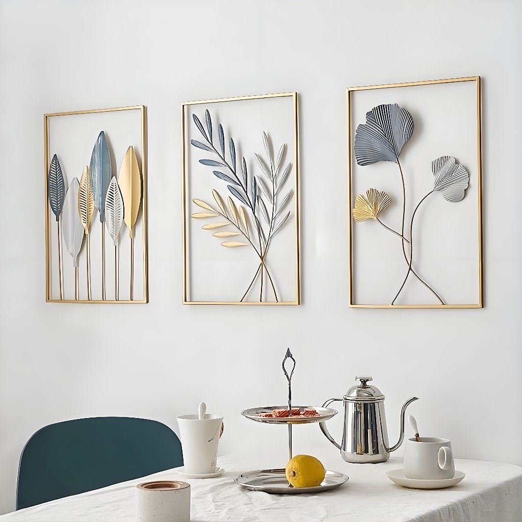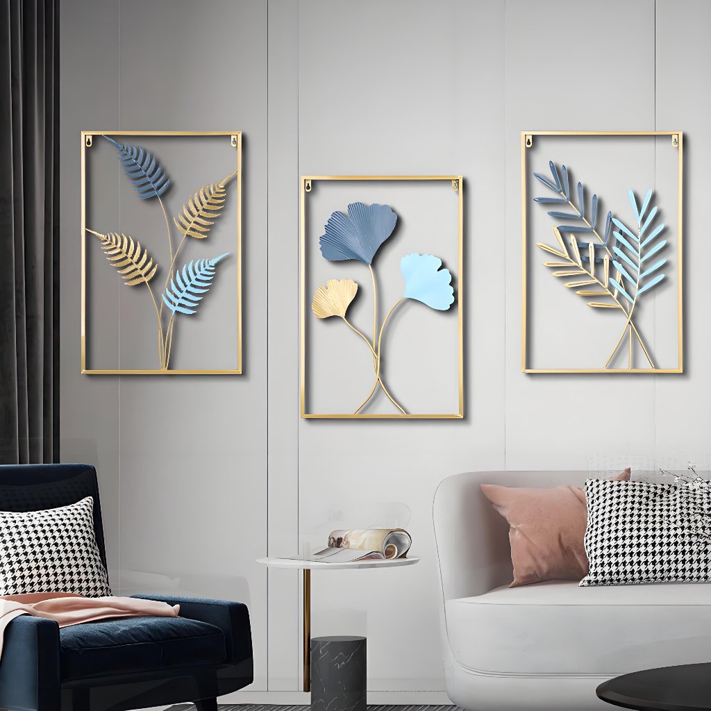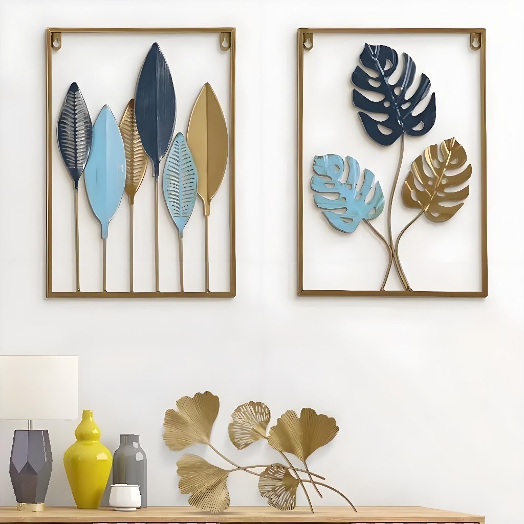 Warna WALL Decor Hiasan Dinding 4060cm Lukisan Dinding Dari Besi Tempa Nordic Besi Sofa Ruang Tamu Hiasan Hiasan Dinding Daun Kerajinan Logam