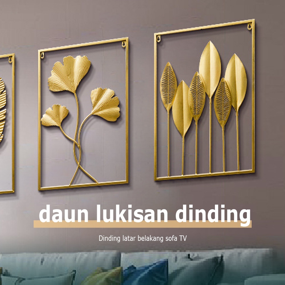 Roxart Hiasan Dinding Wall Decor 4060cm Bunga Daun Estetik Inding Besi Sofa Frame Metal Gold Daun