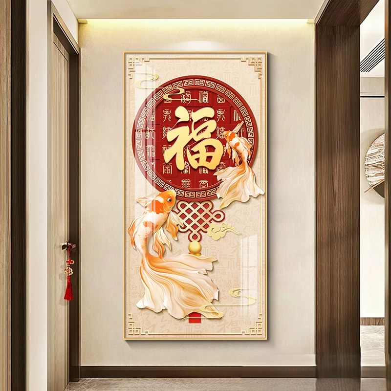 5D Diamond Painting Porcelain Simbol Fu HOK Artistik Vertikal - Hiasan Dinding Premium Mewah Elegan