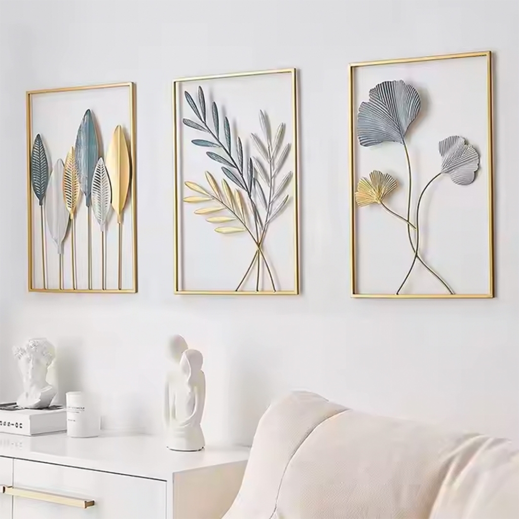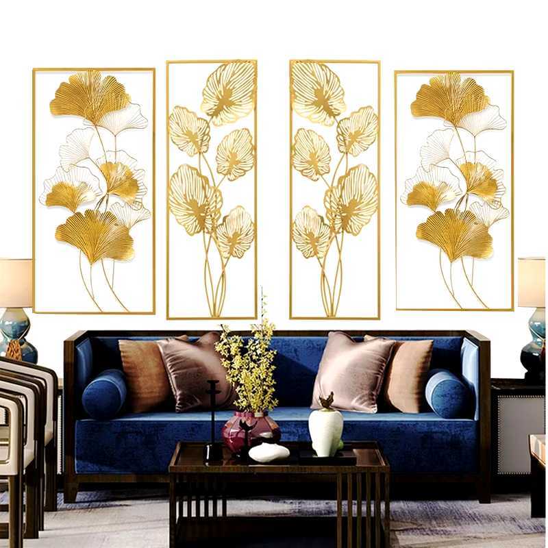 Aveline Dinding Besi Sofa Ruang Tamu Kreatif Modern Latar Belakang Dinding Wall Decor Hiasan Dinding Frame Metal Gold Daun Leaf