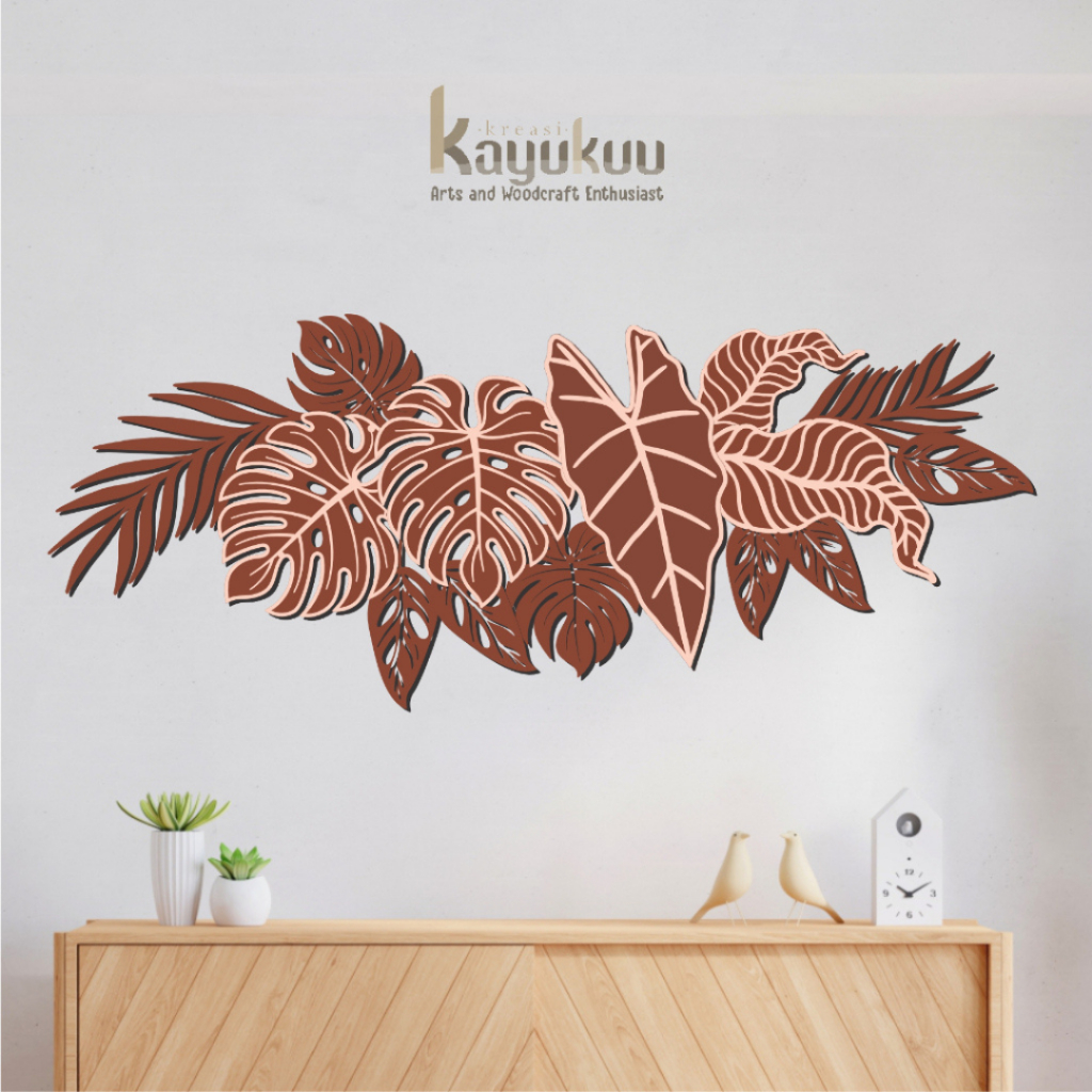 Kreasikayukuu Hiasan Pajangan Dinding Motif Daun Monstera Kayu Timbul Aesthetic